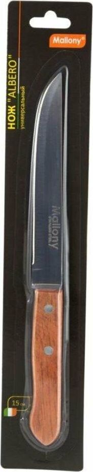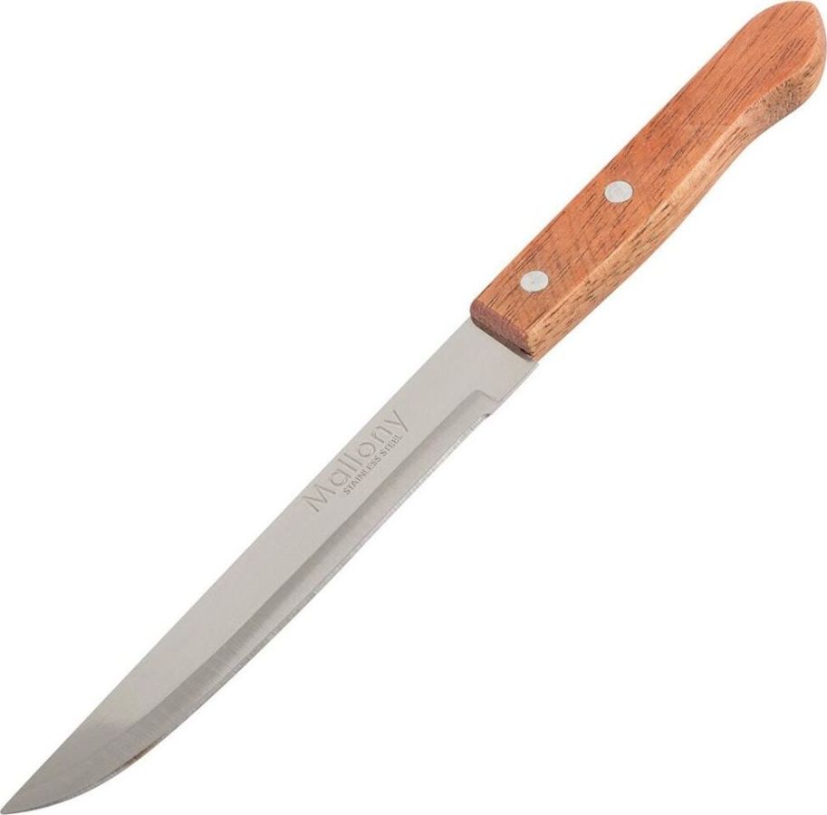 Длина лезвия: 15 см Толщина лезвия: 1,2 мм Длина рукоятки: 11 см Материал: нержавеющая сталь (3CR13 SS), дерево Упаковка: блистер