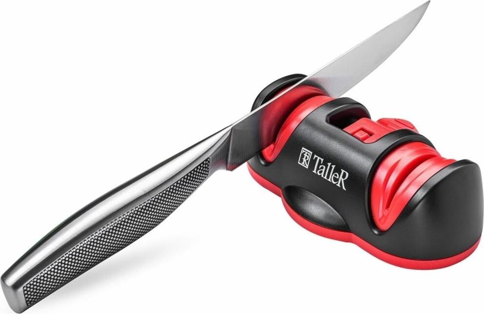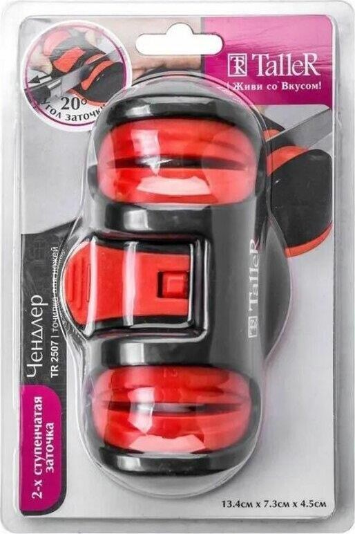 Точилка для ножей "Чендлер", • Размер: 13,4*7,3*4,5 см • 2-х ступенчатая заточка • Угол заточки: 20º • Материал: сталь, керамика, пластик, силиконовое крепление к рабочей поверхности • Шлифовальный модуль из стали, модуль доводки из кера