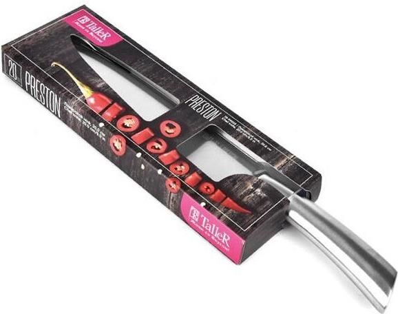 Комплектация: Нож кухонный TalleR TR-22071 поварской, лезвие 20 см , Вид выпуска товара: Фабричное производство , Тип режущей кромки: Гладкая