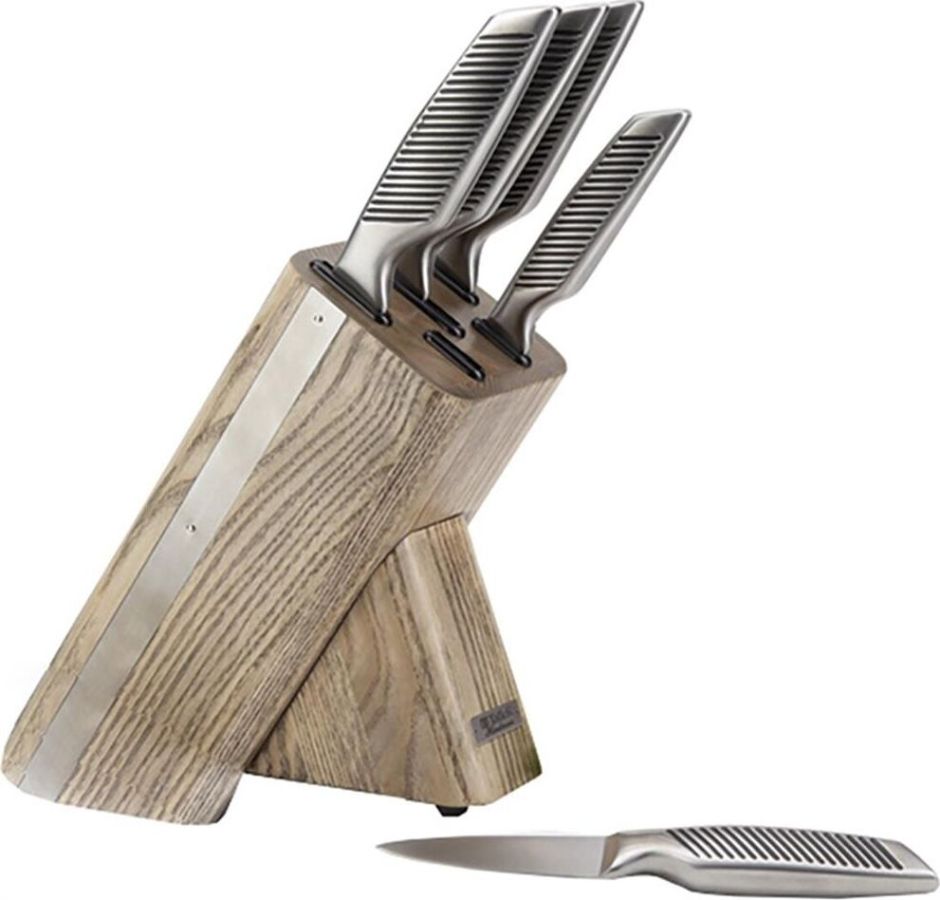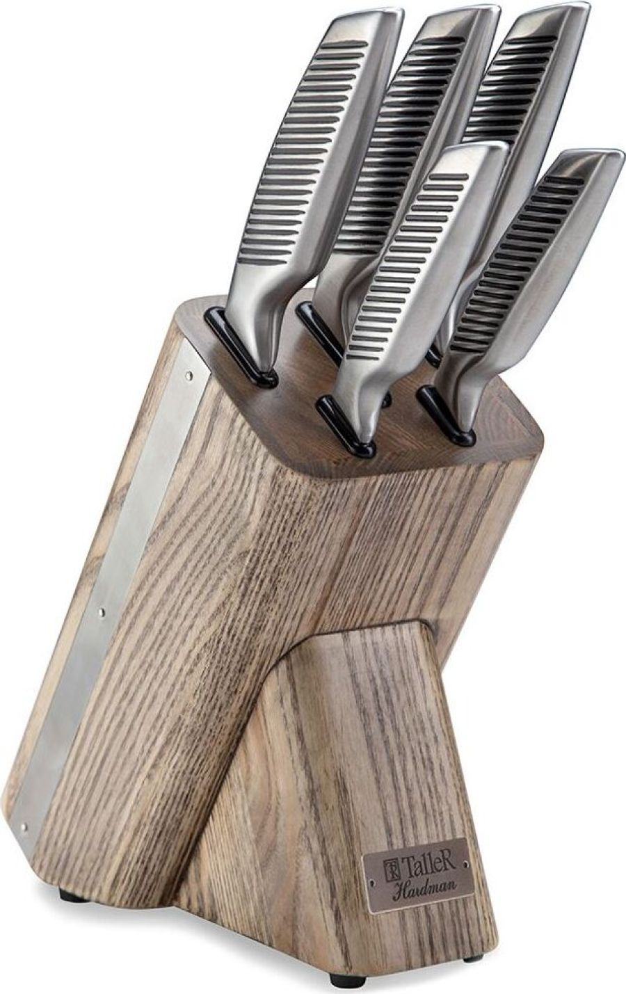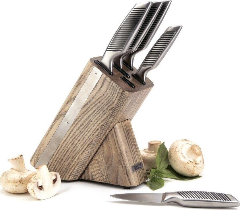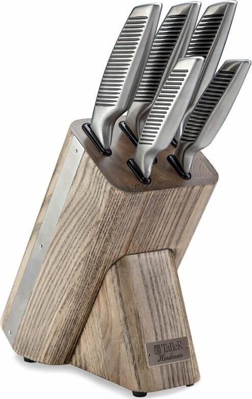Набор ножей 6 пр. Hardman Состав: подставка из дерева ясеня, поварской нож 20,0 см — 1 шт, нож для нарезки 20,5 см — 1 шт, нож для хлеба 20,5 см — 1 шт, универсальный нож 12,0 см — 1 шт, нож для чистки 8,0 см — 1 шт., лезвия ножей выполнены из стали 3Cr1