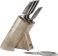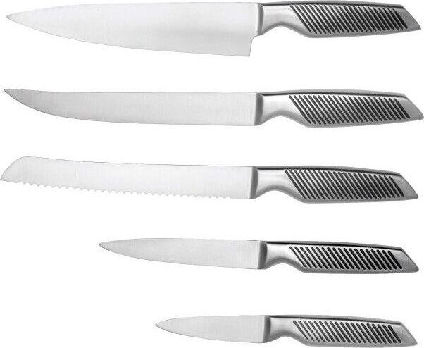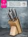 Комплектация: - нож поварской (лезвие 20 см х 2,5 мм);<br> - нож для нарезки (лезвие 20,5 см х 2,5 мм);<br> - нож для хлеба (лезвие 20,5 см х 2,5 мм);<br> - нож универсальный (лезвие 12 см х 1,8 мм);<br> - нож для чистки (лезвие 8 см х 1,8 мм);<br> - подставка из дере