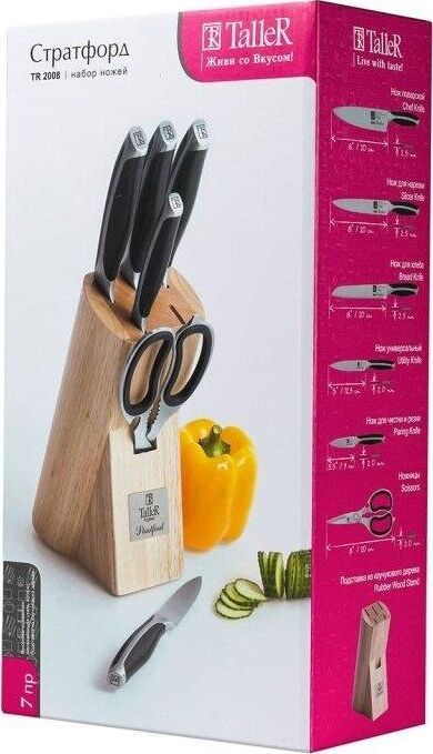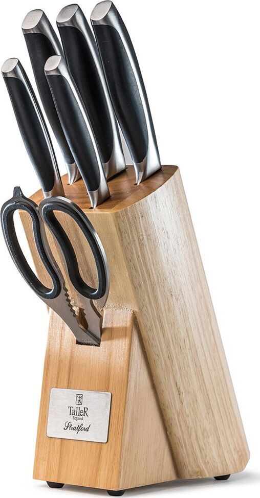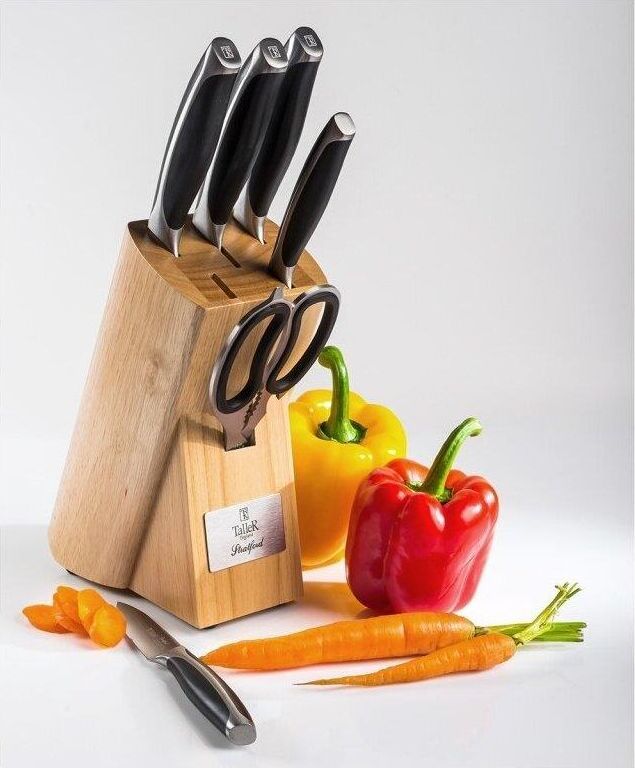 Набор ножей "Стратфорд", 7 пр. Подставка выполнена из каучукового дерева, лезвия ножей сделаны из коррозионностойкой стали 420S45. Состав набора: нож поварской 20,0 см — 1шт., нож для хлеба 20,0 см — 1 шт., нож для нарезки 20,0 см — 1 шт., нож универсаль