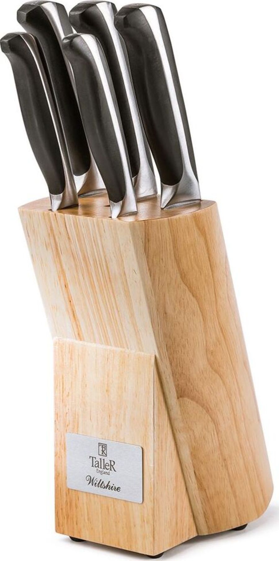 Набор ножей "Уилтшир", 6 пр. Подставка выполнена из каучукового дерева, лезвия ножей сделаны из коррозионностойкой стали 420S45. Состав набора: нож поварской 20,0 см — 1шт., нож для хлеба 20,0 см — 1 шт., нож для нарезки 20,0 см — 1 шт., нож универсальны