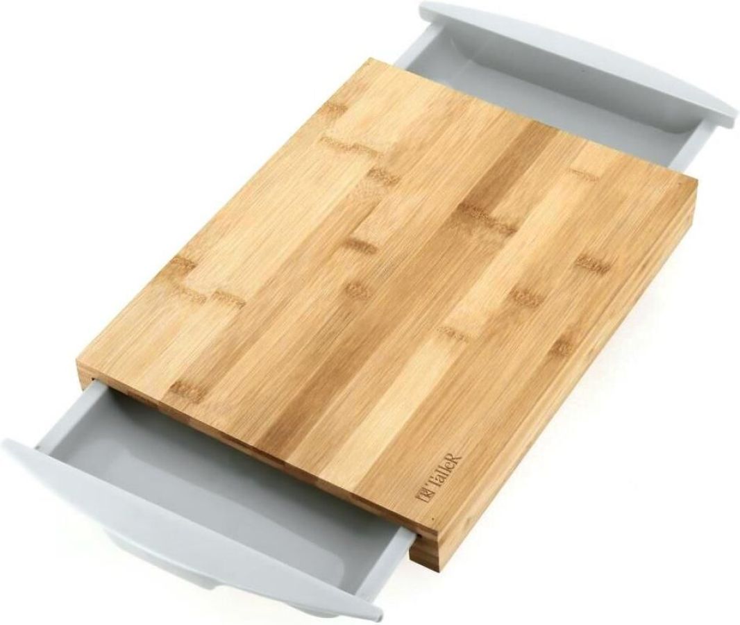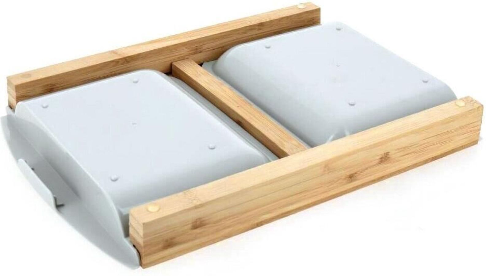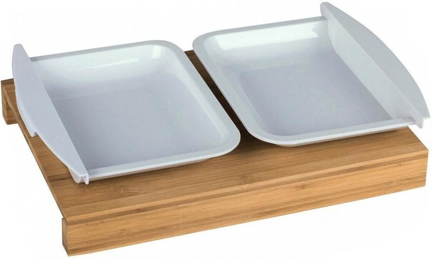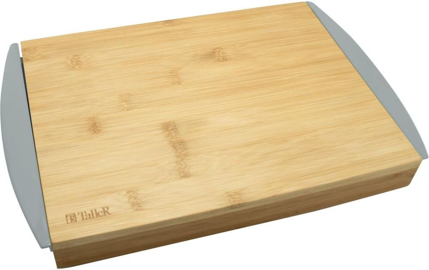 Разделочная доска с двумя пластиковыми лотками Размер: 38,7*25*4 см Материал: бамбук, пищевой пластик Рекомендуется ручная мойка