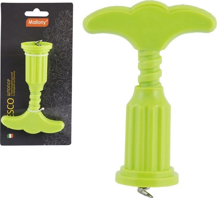 Штопор FRESCO с пластиковой ручкой/с насадкой на бутылку Материал: нерж сталь + пластик, упаковка — картонная подложка.