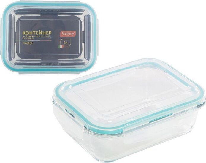 Комплектация: прозрачный/бирюзовый, 15.4x20.5 см, Mallony Контейнер Diafano 005472, 1 л