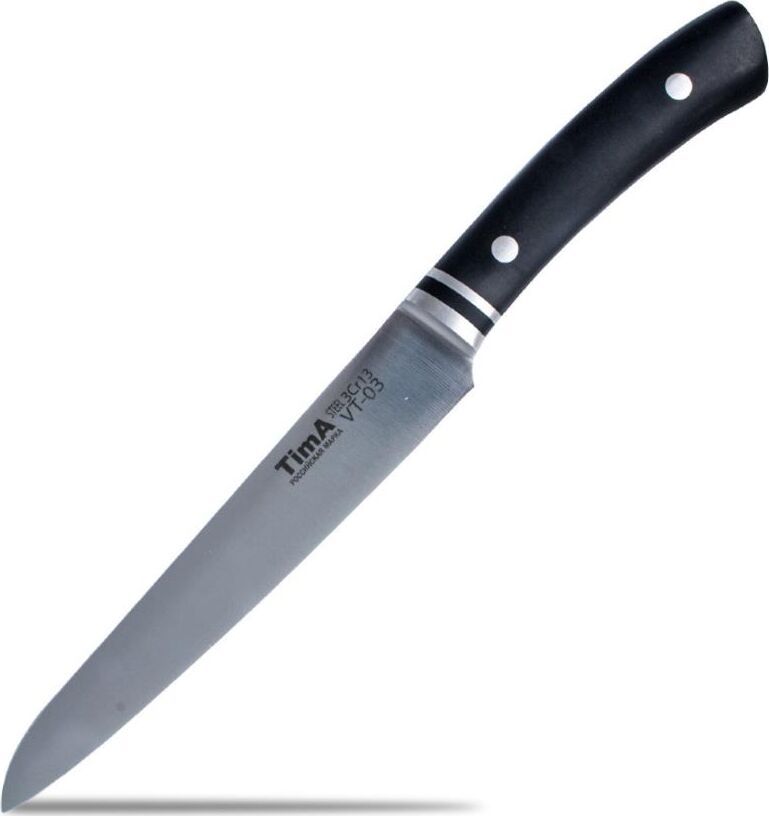 Нож для ежедневного использования. Лезвие ножа сделано из нержавеющей стали. Ручка выполнена из металла с накладками из шлифованного материала BLACK PAKKA, не подверженного влиянию влаги, химически нейтрального, не впитывающего запахи и исключительно износостойкого.