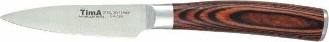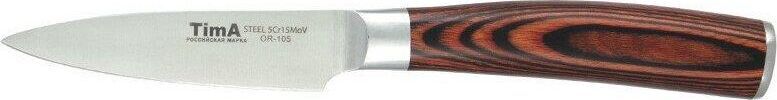 Материал: Молибден-ванадиевая сталь. Ручка Pakka коричневая. Благодаря молибдену лезвие имеет нужную жесткость, а ванадию - металл не вступает в химические реакции с продуктами. Твердость лезвия по шкале Роквелла — 55 HRC. Коричневая ручка Pakka покрыта лаком не скользит и удобно лежит в руке. Форма его клинка позволяет раскачивать нож на разделочной доске и достигать точных разрезов.