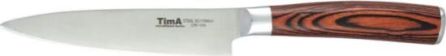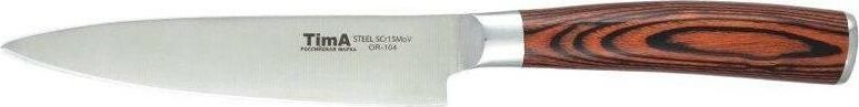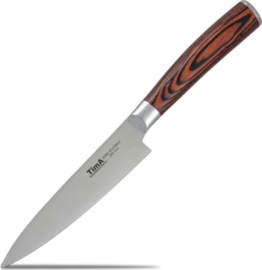Материал: Молибден-ванадиевая сталь. Ручка Pakka коричневая. Благодаря молибдену лезвие имеет нужную жесткость, а ванадию - металл не вступает в химические реакции с продуктами. Твердость лезвия по шкале Роквелла — 55 HRC. Коричневая ручка Pakka покрыта лаком не скользит и удобно лежит в руке. Форма его клинка позволяет раскачивать нож на разделочной доске и достигать точных разрезов.