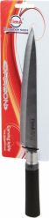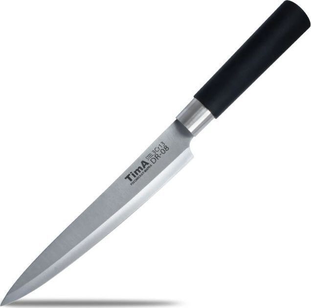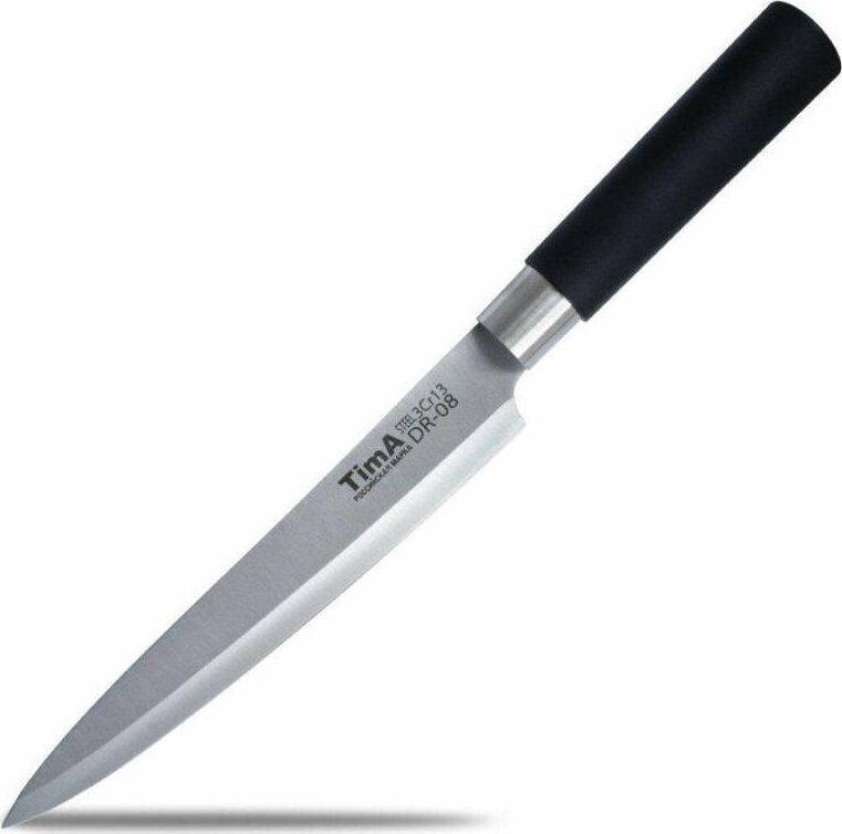 Нож представляет собой модифицированную сталь марки 440А (одна из самых популярных марок ножевой стали среднего ценового диапазона), закаленную до твердости примерно 57 HRC. Высокое содержание хрома (13%) не только увеличивает твёрдость и износостойкость, улучшая тем самым режущие свойства лезвия, но и придаёт стали антикоррозийные свойства. А благодаря повышенному Ручка цилиндрической формы не скользит даже в мокрой руке. Материал ручки обладает высокой стойкостью к маслам, щелочам и кислотам, которые на кухне не редкость. Устойчив к загрязнениям, легко моется в посудомоечной машине и не оставляет на поверхности следов от пальцев.