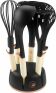 Комплектация: ложка для спагетти, венчик для взбивания, подставка, шумовка, половник, картофелемялка, лопатка с прорезями