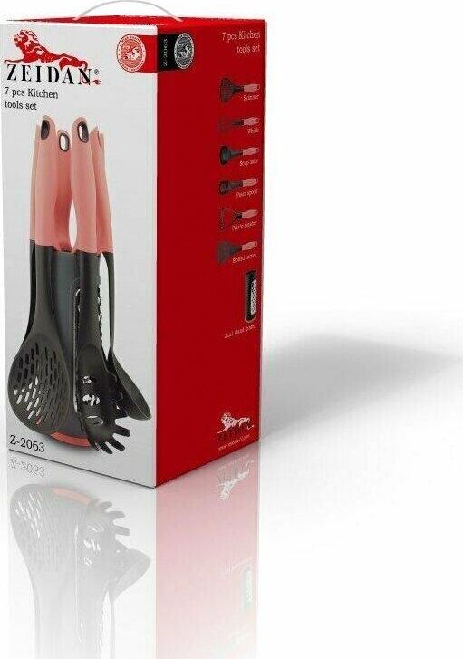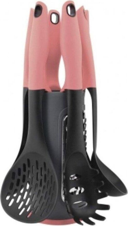 Комплектация: венчик для взбивания, ложка для спагетти, картофелемялка, половник, шумовка, лопатка с прорезями, подставка-терка 2 в 1