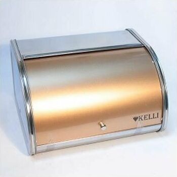 Хлебница металлическая глянцевая Высокачественная нержавеющая сталь Металлическая цветная(цвет бронза) крышка с удобной металл.ручкой Экологичные материалы Размер: 30,5*26,5*17,5см