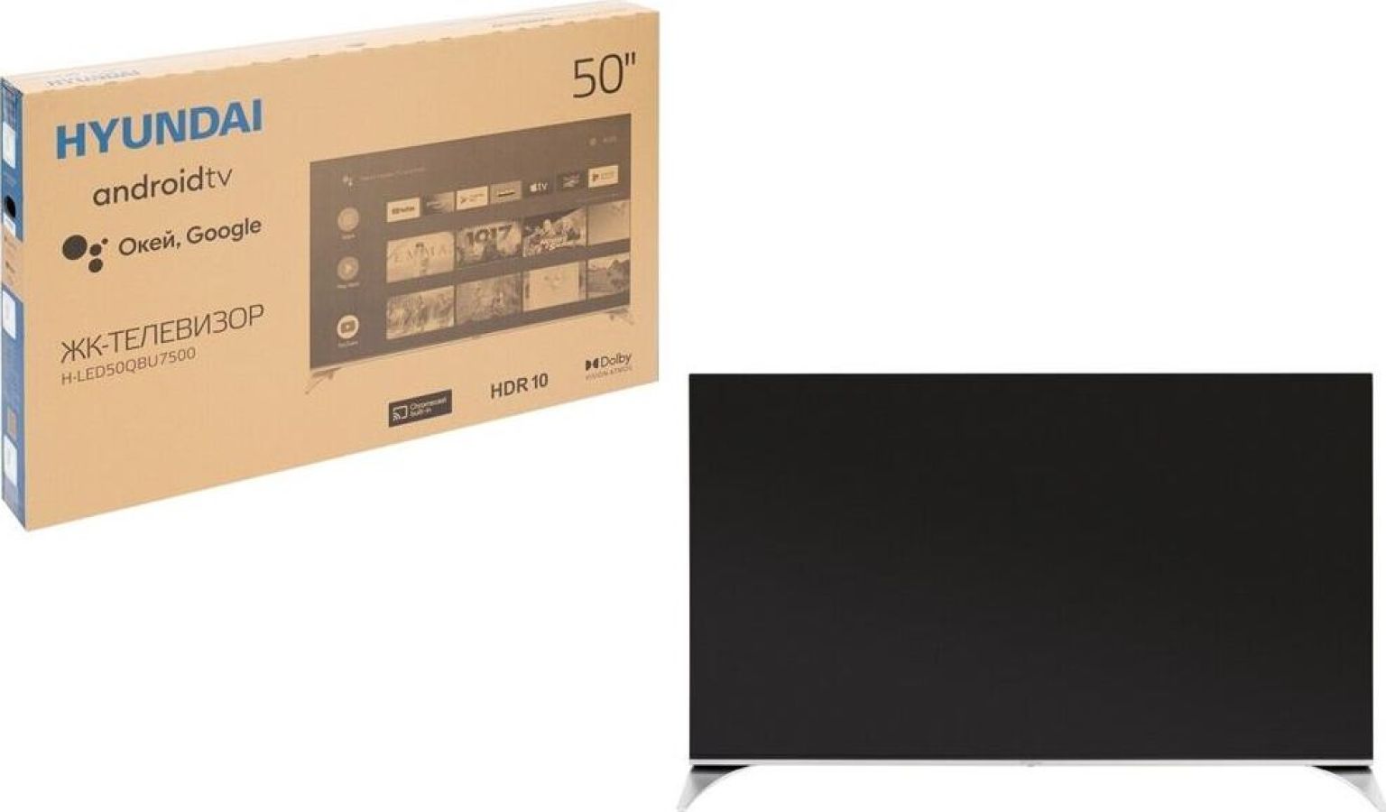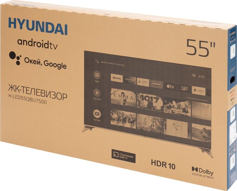 Hyundai 55" H-LED55QBU7500 Android TV Frameless черный/4K Ultra HD/60Hz/DVB-T/DVB-T2/DVB-C/DVB-S/DVB-S2/USB/WiFi/Smart TV