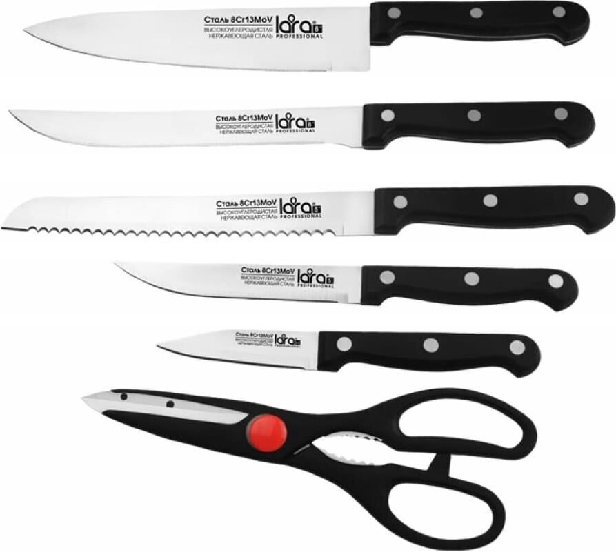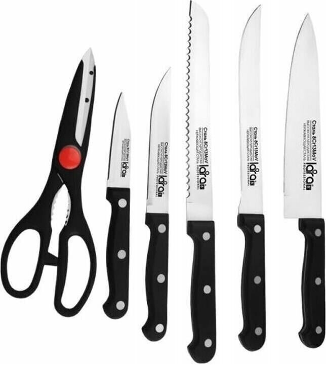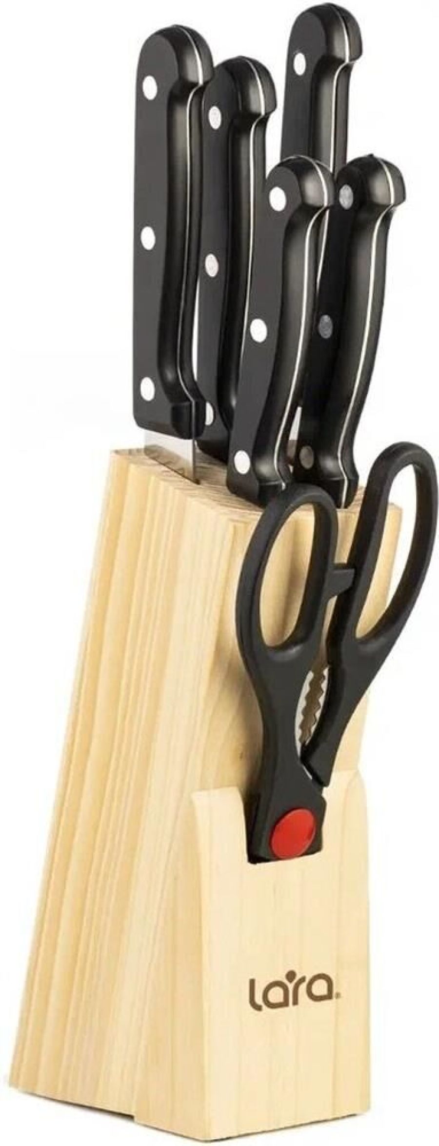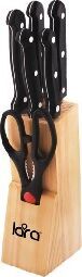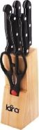 LR05-53 LARA Набор ножей 7 предметов: ДЕРЕВЯННАЯ ПОДСТАВКА + 5 ножей + ножницы