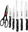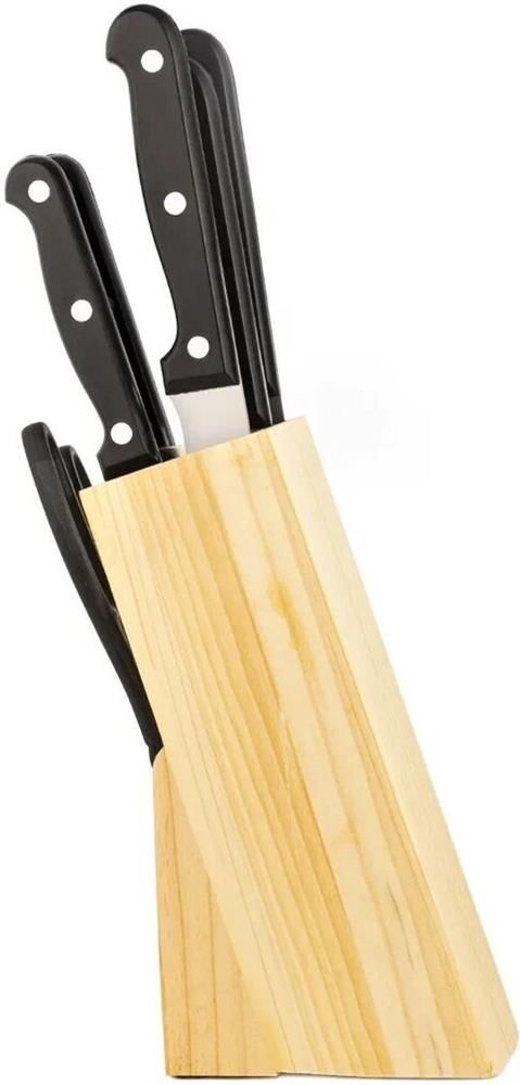 Комплектация: нож для овощей 9 см; нож универсальный 20 см; нож разделочный 12,5 см; нож для хлеба 20 см; нож поварской 20 см; ножницы; подставка , Количество предметов в упаковке: 7 , Рисунок: без рисунка , Назначение подарка: жене, маме, любимой , Повод: без повода, 8 марта, новый год