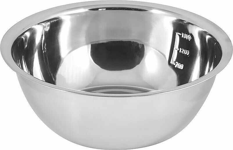 Миска из нержавеющей стали с расширенными краями Толщина - 0,3 мм Одинарное дно Внутри и снаружи - зеркальная полировка Упаковка: стикер/пакет диаметр 19 см *5,5 см (высота) литраж 1 л