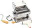 Насадка д/пельменей (равиолли). 9 режимов толщины раскатки теста. Нож д/резки теста. Нарезной блок для 2-х видов лапши. Нарезка лапши 2мм и 6.6мм. Валик д/раскатки теста. Регулятор толщины теста. Механический привод. Инструкция + рецепты.