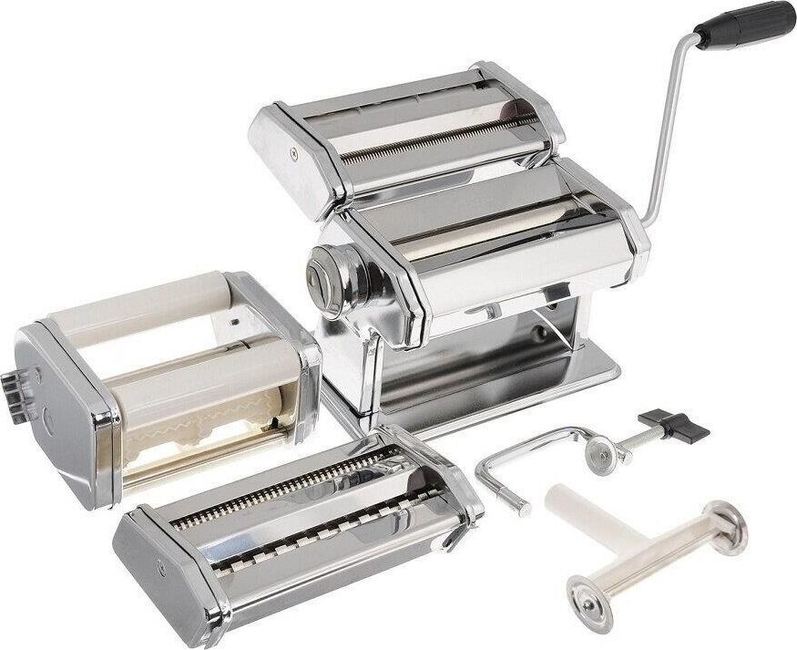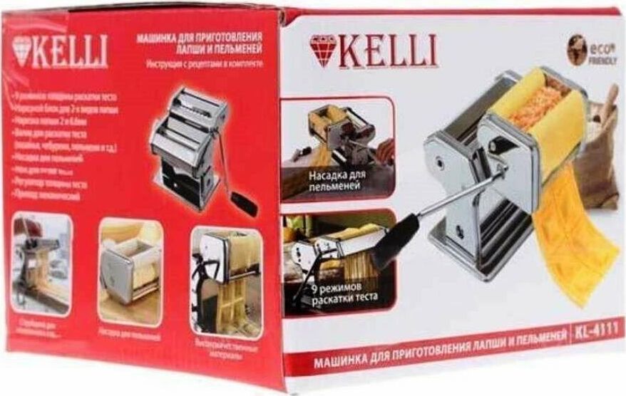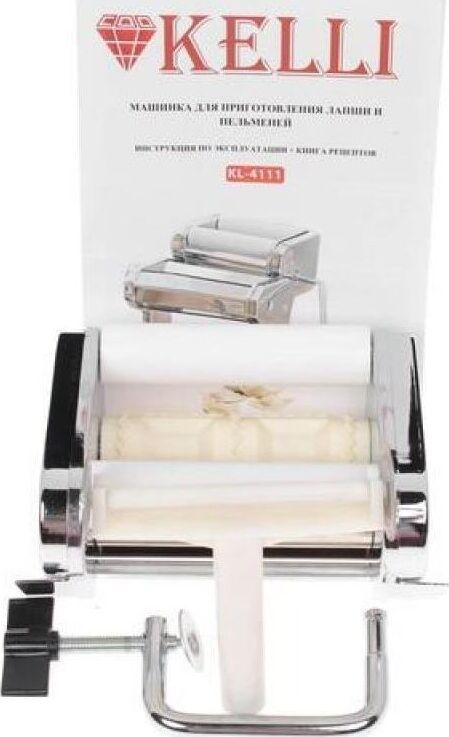 Комплектация: валик для раскатки теста, инструкция, нарезной блок для 2-х видов лапши, струбцина для крепления к столу, насадка для пельменей, нож для нарезки теста
