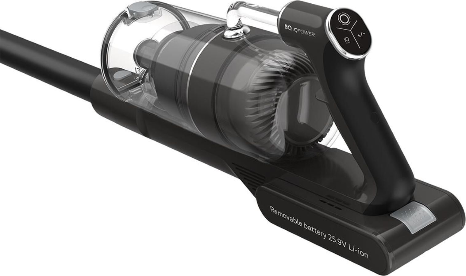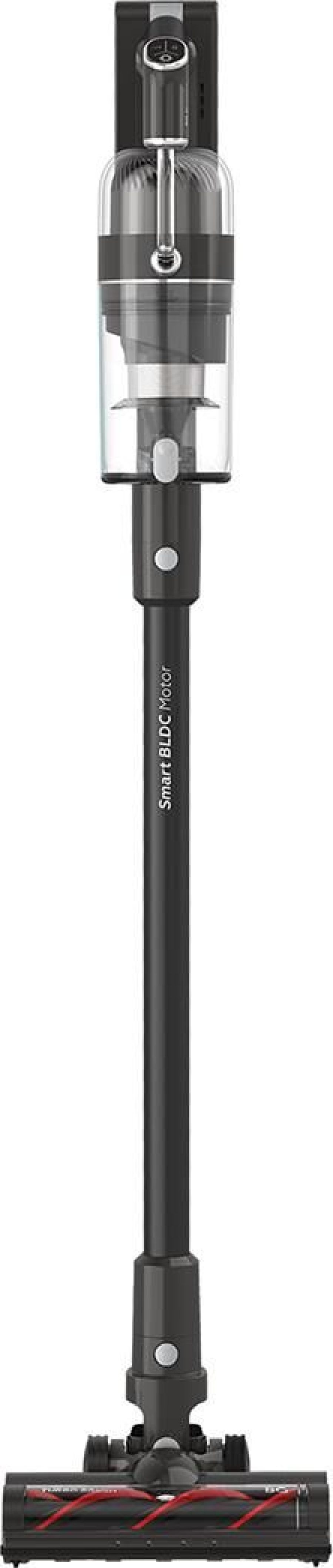 Вертикальный беспроводной пылесос с технологией Х3 TORNADO multycyclone, емкость пылесборника 0,5 л, мощный BLDC-мотор, потребляемая мощность: 300 Вт, мощность всасывания 130 Вт, IQ POWER интеллектуальная регулировка мощности 4 режима, Емкость аккумулятора Li-ion 2200 мАч, Время заряда До 5 часов, Время работы До 45 минут, уникальная LED-подсветка, насадки и аксессуары: турбощетка, сменный ролик турбощетки, щеловая насадка, насадка для мягкой мебели, допольнительный фильтр НЕРА Н11, Уровень шума <78 дБ, Вес нетто 3 кг