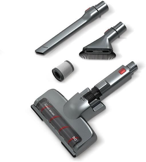 Беспроводной пылесос 2 в 1: вертикальный и компактный, Технология "Циклон", Максимальная мощность 140 Вт, Емкость пылесборника 0.6 л, Электронное управление, Съемный Li-ion аккумулятор 2200 мАч 22.2 В, Время непрерывной работы до 30 минут, Фильтр HEPA H11 Anti-allergy, Телескопическая трубка, Park and Go Функция вертикальной парковки, Турбощетка для пола Soft-turbobrush co встроенной LED-подсветкой, Узкая насадка, Щетка для мебели, Щетка для очистки аксессуаров, дополнительный фильтр HEPA-11, Уровень шума 75 дБ, Вес нетто 2.7 кг, Напряжение 100-240 В, 0.5 А