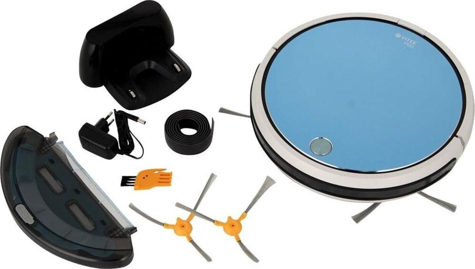 Робот-пылесос. Тип аккумуляторная батарея: (Li-Ion), Время заряда аккумулятора: 5 часов, Время работы от аккумулятора до 2 часов, Кол-во режимов работы: 4, Wi-Fi управление: ДА, Гироскопическая система навигации: ДА, Автоматическая установка на зарядку: ДА, HEPA-фильтр, Влажная уборка, Встроенная вращающаяся основная щетка, Допустимая высота коврового покрытия: 1 см, Звуковая индикация, Индикация степени зарядки и застревания, Кол-во инфракрасных датчиков препятствий: 11 пар, Кол-во пар инфракрасных датчиков определения ступенек: 3, Магнитная лента, Насадка для мытья полов: 1, Объем пылесборника: 0,5 литра, Объем резервуара для воды: 0,1 литра, Кол-во боковых щеток: 2, Мощность всасывания: 500 Па, Таймер, Уровень шума: 65, Корпус: алюминий/пластик, Цвет: Белый/голубой