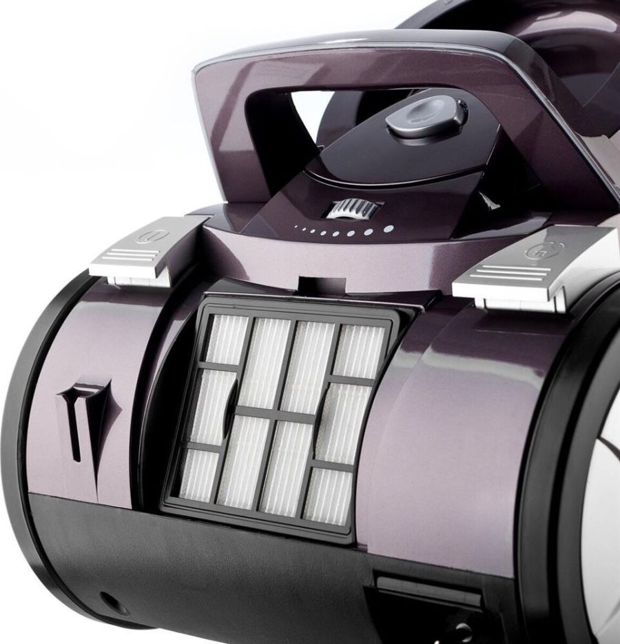 Максимальная мощность 2200 Вт Multy Cyclone Technology Мощность всасывания 420 Вт Многоступенчатая система фильтрации с HEPA фильтром Регулировка мощности на корпусе Ёмкость контейнера для пыли 4л Стальная телескопическая труба (90 см) Универсальная щётка с переключателем «пол/ковёр» Дополнительные насадки: – паркетная щетка – щетка для чистки мебели – щелевая насадка Длина шнура 5 м Автоматическая смотка шнура Ручка горизонтальной переноски Электропитание 220-240 В, 50/60 Гц