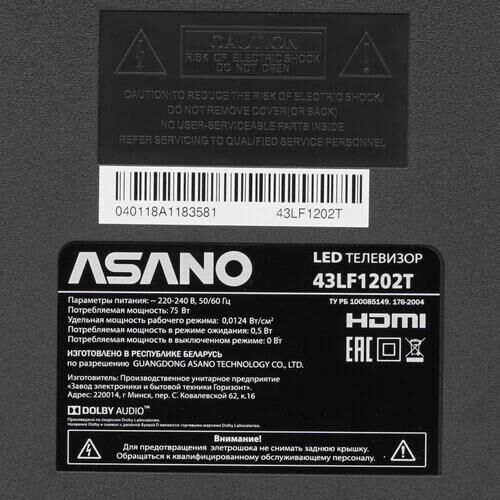 Размер экрана телевизора, см 108см Особенности телевизора FHD Размер экрана 43" Формат экрана 16:9 Частота обновления 60 Гц Яркость экрана, кд/м2 250 Контрастность 5000:1 Тюнер DVB-T2/C Мощность звука, дБ 2*7 Разъем для наушников 1 Выход HDMI 2 Цвет Titanium Gold Вес без упаковки, кг 6.60 Входные/выходные разъемы CI слот 1 Наличие входа аудио-видео 1 Коаксиальный разьем SP-DIF 1 Порты Наличие USB 2.0 2 ВГХ упаковки Ширина упаковки, мм 103 Глубина упаковки,мм 13 Высота упаковки, мм 66 Упаковка Ширина, мм 130 Высота, мм 660 Глубина, мм 1030 Объем, м3 0.0884 Вес, кг 9