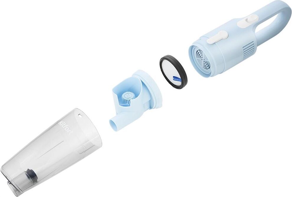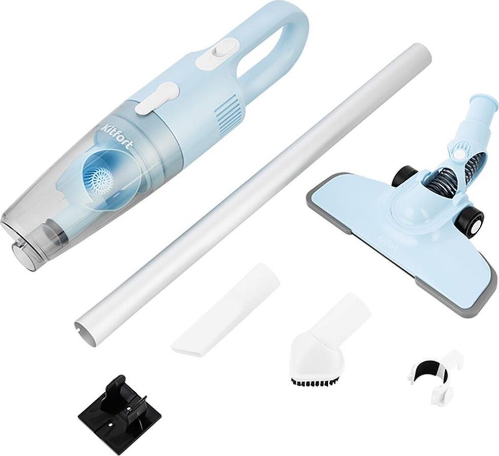 Пылесос ручной Kitfort KT-586-2 600Вт голубой Лёгкое и увлекательное занятие! Вертикальный пылесос Kitfort КТ-586 удобен для уборки различных поверхностей: линолеум, паркет, ламинат, ковёр, ковровые покрытия, плитка, мрамор и т.д. Он компактный и лёгкий. Шнур длиной 5 м позволяет убирать на большом расстоянии от розеток. Тип уборки сухая Работа с контейнером для пыли да Объем пылесборника 1.2 л Мощность 600 Вт Конструкция Место для хранения насадок есть Труба для всасывания цельная Насадки и принадлежности Общее количество насадок 3 шт Насадки в комплекте напольная щётка для уборки плоских напольных покрытий, узкая насадка для уборки углов и щелей, ворсовая насадка для чистки мягкой мебели. Время работы, зарядка, электропитание Тип электропитания от бытовой электросети Длина сетевого шнура 5 м Размеры, цвет, вес Уровень шума 75 дБ Размеры (ШхВхД) 230 х 1210 х 110 мм Цвет голубой Вес 1.6 кг Упаковка Габариты упаковки (ед) ДхШхВ 0.13x0.12x0.65 м Вес упаковки (ед) 2.45 кг