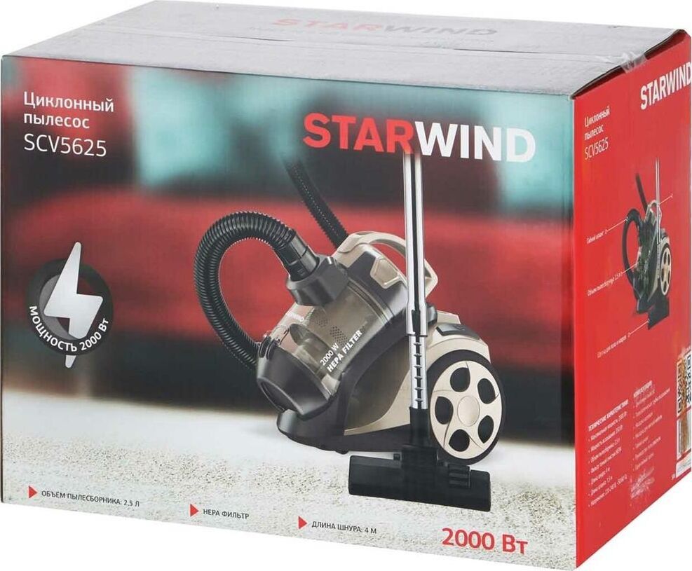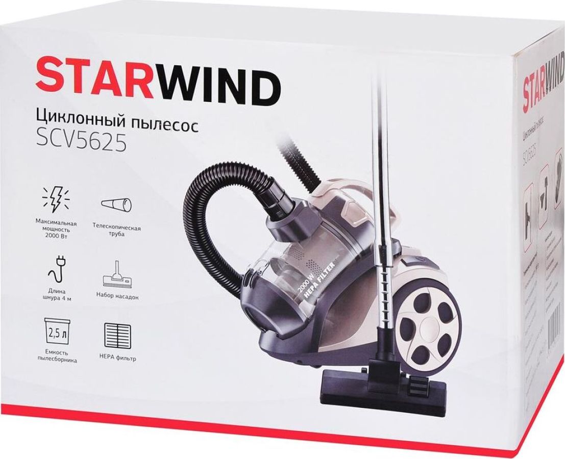 Пылесос циклонного типа Максимальная мощность 2000 Вт Мощность всасывания 350 Вт Объем пылесборника 2.5 л Телескопическая труба всасывания Фильтр тонкой очистки Длина шнура 4 м Щелевая насадка в комплекте