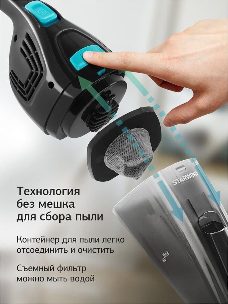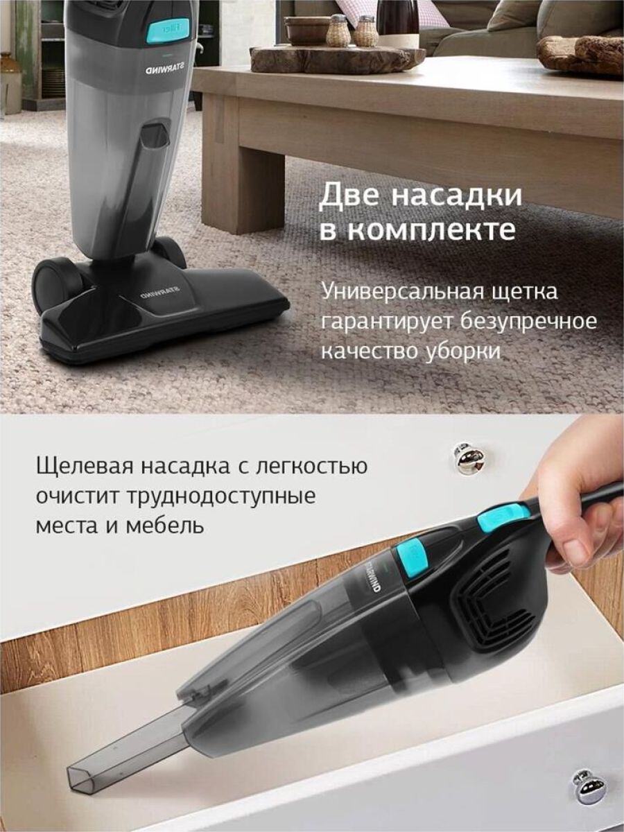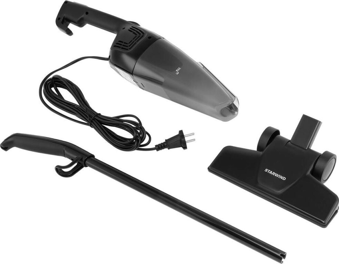 ТипРучной пылесос Тип уборкисухая Мощность800Вт Работа с контейнером для пылиДА Объем пылесборника1л Общее количество насадок2шт Насадки в комплектеНасадка для пола и ковров, щелевая насадка. Тип электропитанияот бытовой электросети Длина сетевого шнура5м Цветчерный