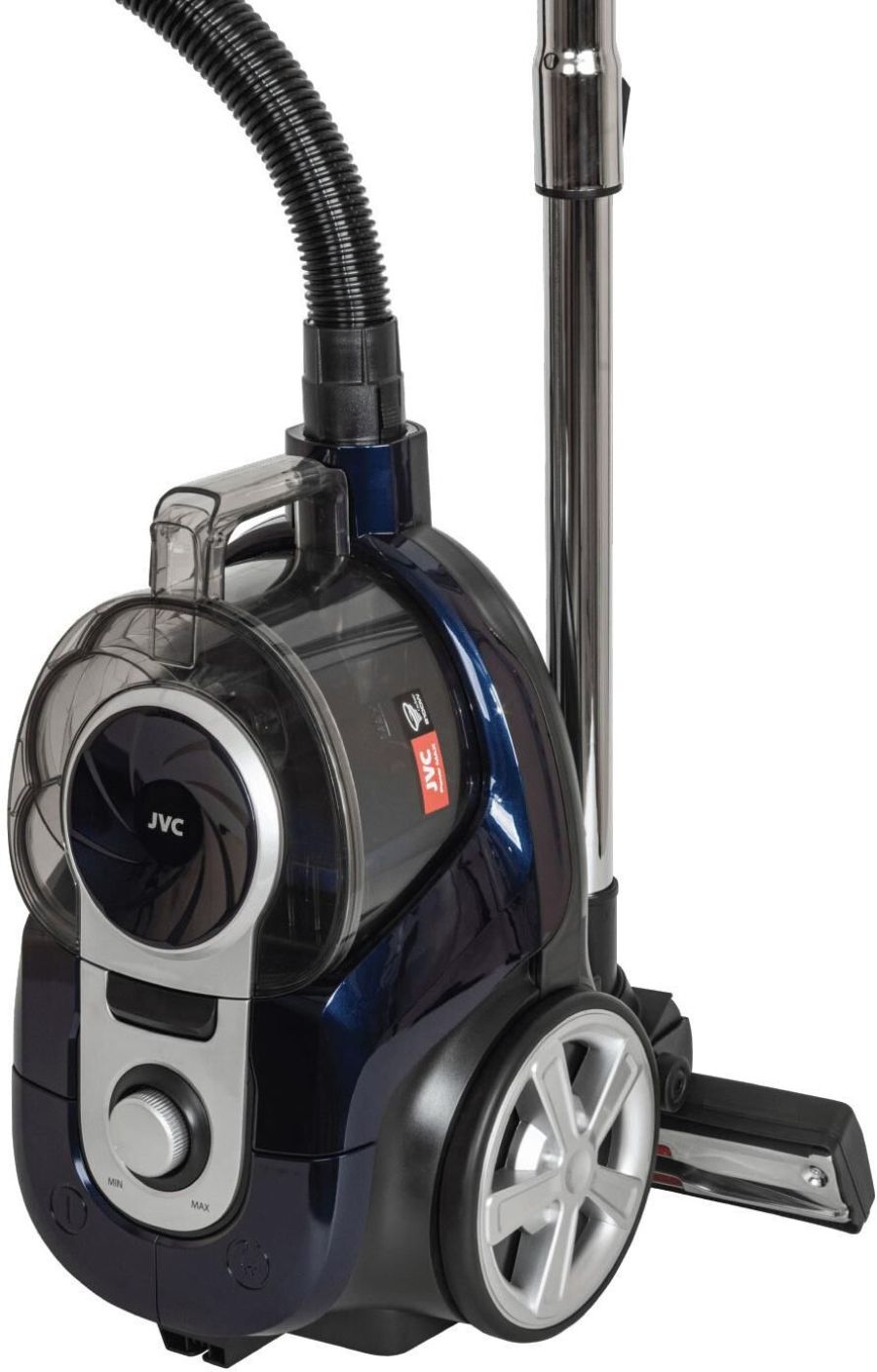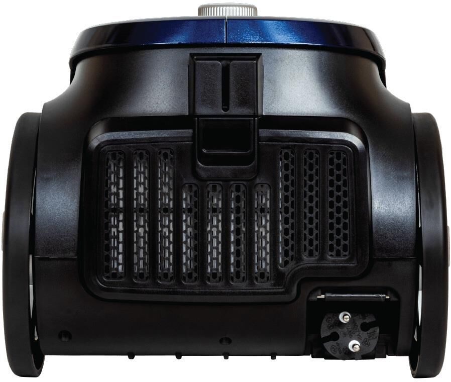Пылесос циклонного типа, максимальная мощность 2100 ватт, объем контейнера 2,5 литра, 4-х уровневая система фильтрации, моющийся фильтр HEPA, регурировка уровня мощности, управление воздушным потоком на ручке, уровень шума 79 дБ, металлическая телескопическая трубка, универсальная щетка ковер/пол, щелевая насадка 2 в 1, насадка для мягкой мебели, держатель для аксессуаров, автоматическая смотка шнура, длина кабеля 7 метров
