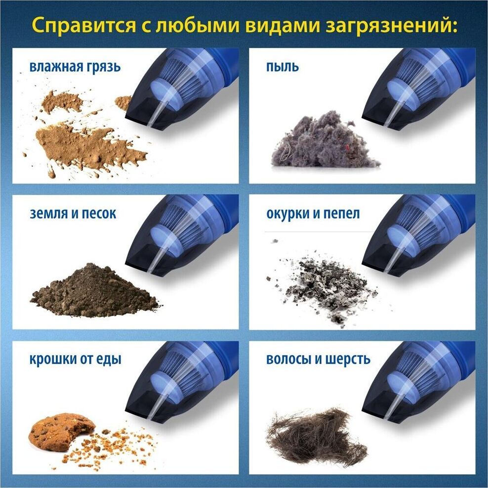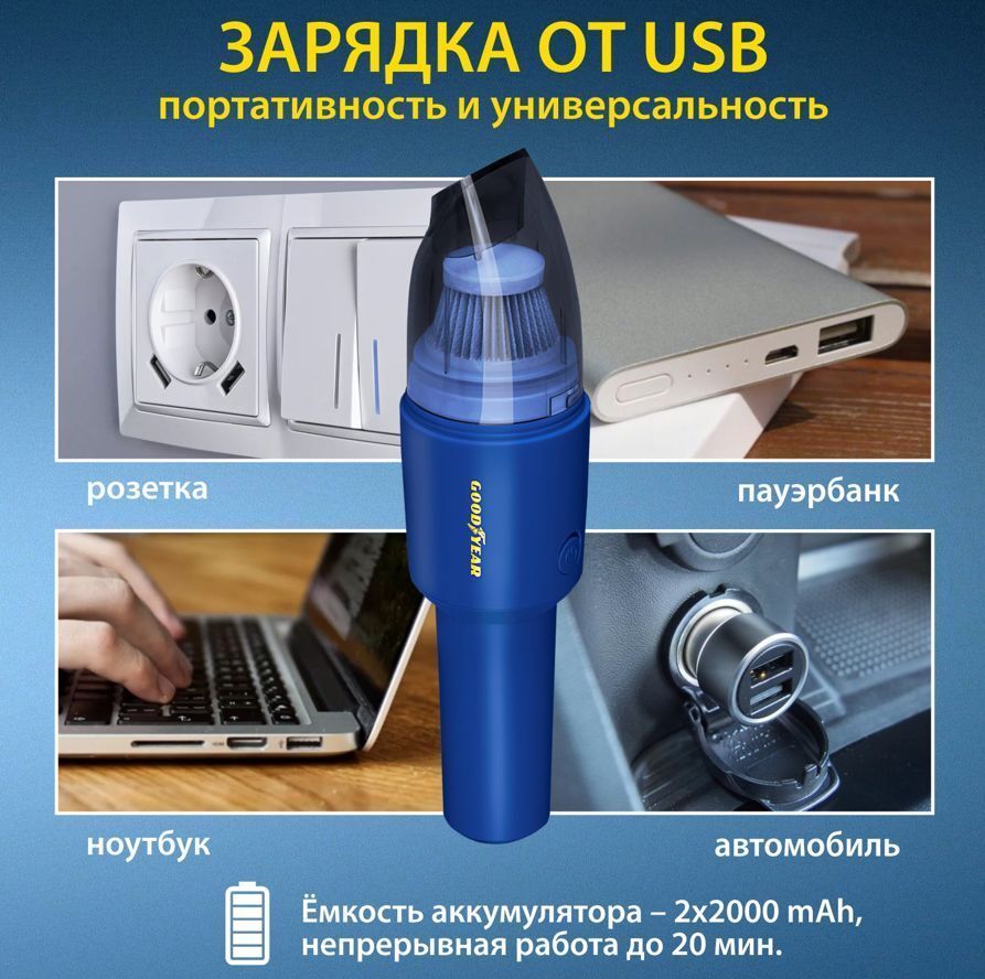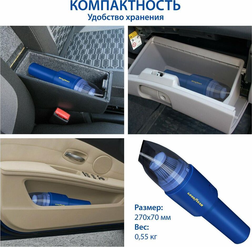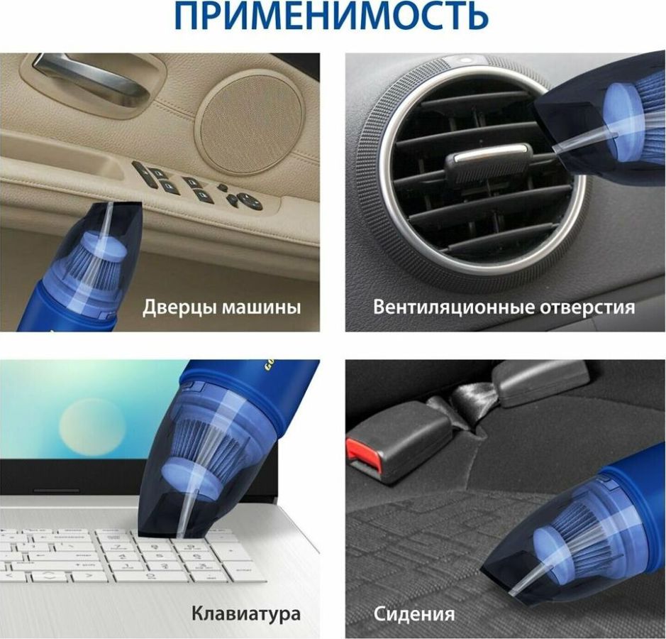 Беспроводной автомобильный пылесос для сухой уборки. Высокая мощность всасывания - 5000 Pa. Портативность и универсальность. Многоразовый моющийся HEPA фильтр. Насадки для эффективной очистки различных загрязнений. Низкий уровень шума. Пылесос с фильтром Нера. Провод USB с интегрированным блоком питания. Щелевая насадка. Насадка-щетка. Переходник. Дополнительный фильтр. Инструкция. Мощность: 55 Вт. Мощность всасывания: 5000 Pa. Входное напряжение: 5 В, 1 А. Выходное напряжение: 8,4 В. Емкость батареии: 2х2000 mAч. Время непрерывной работы: до 20 мин. Емкость пылесборника: 65 мл. Габариты ДхШхВ: 330х150х105 мм. Вес: 0,55 кг