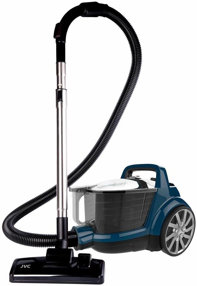 JVC JH-VC405 Пылесос циклонного типа Мотор повышенной эффективности Максимальная мощность: 2050 Вт Максимальная мощность всасывания: 360 Вт Пониженный уровень шума: 75 дБ(А) Регулировка мощности всасывания Высокоэффективная 3-уровневая система фильтрации: - фильтр HEPA 12 - фильтр HEPA 10 - губчатый фильтр Прозрачный контейнер для сбора пыли: 2 л Легкая очистка контейнера Металлическая телескопическая трубка Автоматическая смотка шнура Вертикальная парковка Горизонтальная парковка Увеличенный радиус действия: до 9 м Длина шнура: 6 м Универсальная щетка "ковер/пол" Щелевая насадка Насадка для мебели
