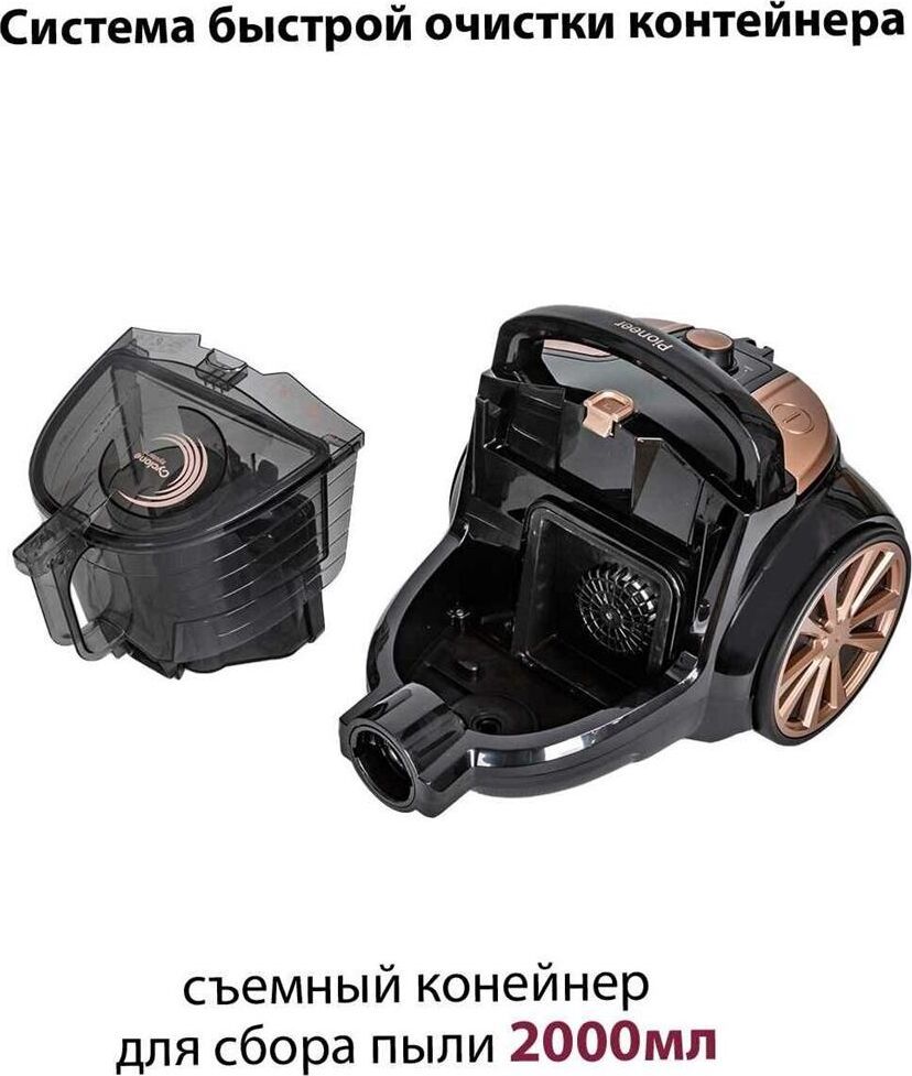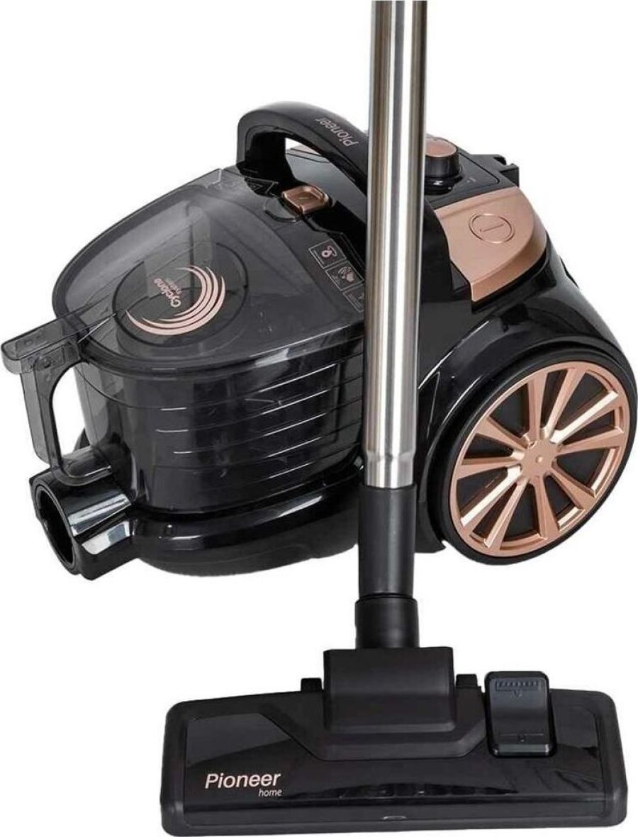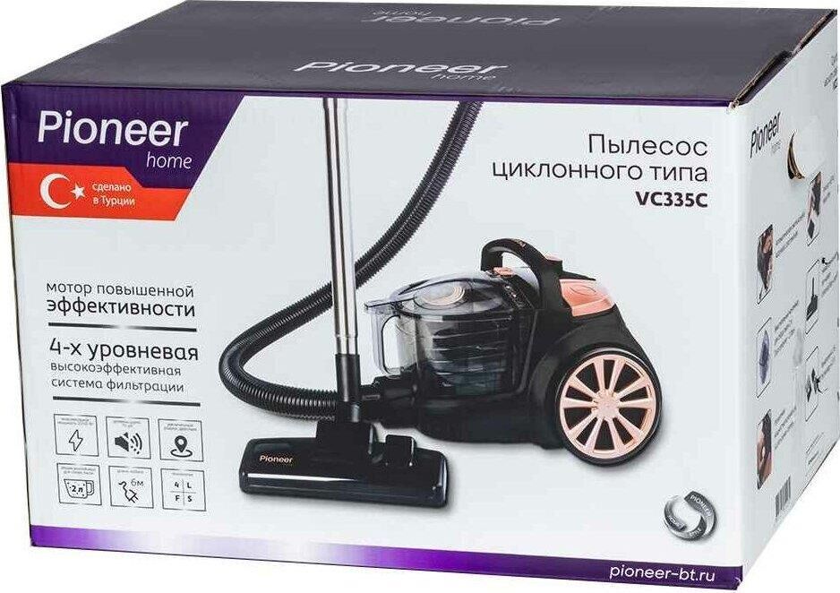 PIONEER VC335C Тип пылесоса: циклонный Емкость пылесборника, л.: 2 Мощность всасывания, Вт.: 360 Регулировка мощности: есть Тип трубки: телескопическая металлическая Система фильтрации: моющийся фильтр HEPA 12, моющийся фильтр HEPA 10, моющийся губчатый фильтр Уровень шума, дБ.: 75 Смотка шнура: автоматическая Тип уборки: сухая Вертикальная парковка : есть Комплектация: пылесос, универсальная щетка «ковер/пол», щелевая насадка, насадка для мебели, гарантийный талон, инструкция на русском языке Материал корпуса: пластик Цвет: черный с персиковым Длина сетевого шнура, м.: 6 Максимальная потребляемая мощность, Вт.: 2050 Электропитание, в., Гц.: 220-240, 50 Дополнительная информация: увеличенный радиус действия (до 9 м), мотор повышенной эффективности