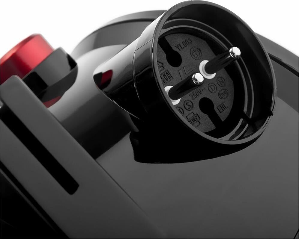 Максимальная мощность 2200 Вт. Multy Cyclone Technology. Мощность всасывания 420 Вт. Многоступенчатая система фильтрации с HEPA фильтром Регулировка мощности на корпусе. Ёмкость контейнера для пыли 2,5 л. Стальная телескопическая труба (90 см.) Универсальная щётка с переключателем «пол/ковёр» Дополнительные насадки: – паркетная щетка. – щетка для чистки мебели – щелевая насадка. Длина шнура 5 м. Автоматическая смотка шнура Ручка горизонтальной переноски Электропитание 220-240 В., 50/60 Гц.