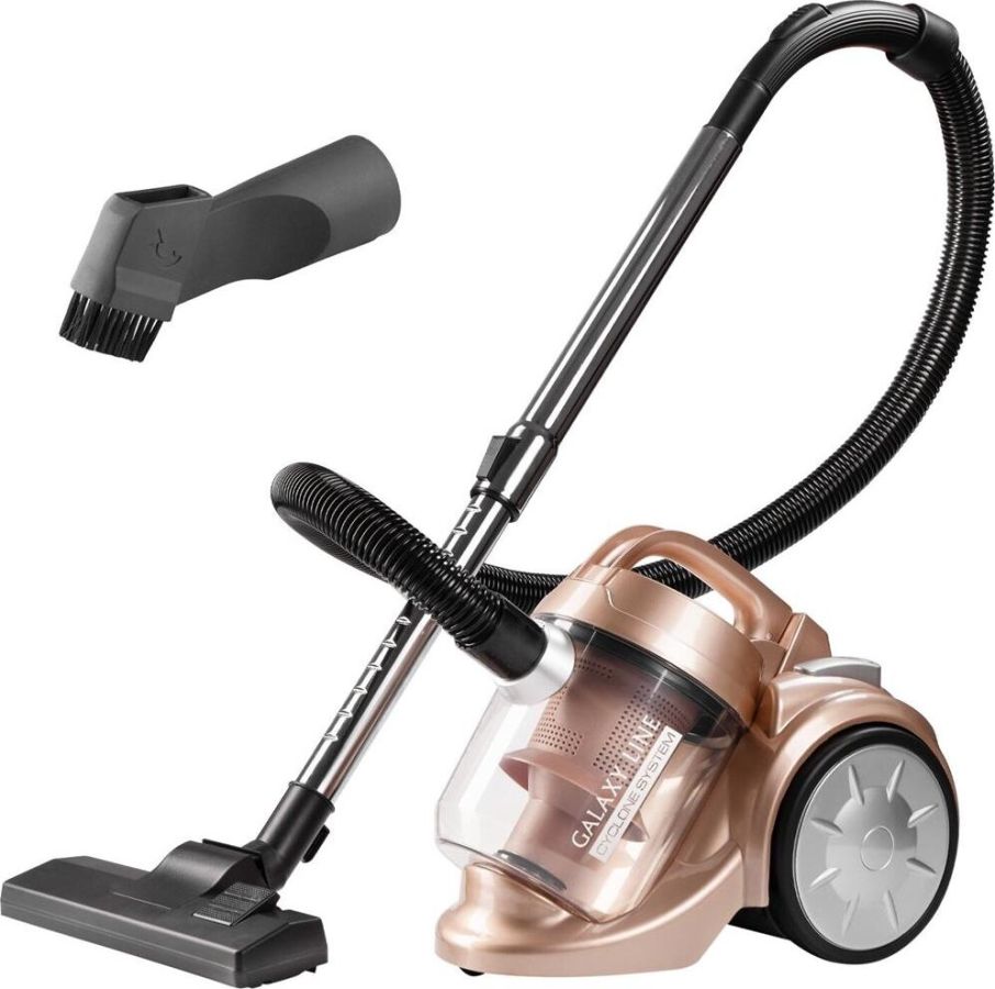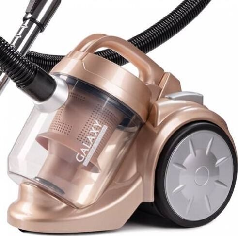 GALAXY GL 6230 Мощность: 1700 Вт. Мощность всасывания: 350 Вт. 3-ступенчатая система фильтрации: - циклонный фильтр - входной фильтр тонкой очистки - выходной хлопчатобумажный фильтр Циклонная система без потери мощности всасывания Объём контейнера 2 л. Легкая очистка контейнера Автоматическое сматывание шнура Длина шнура питания 4,5 м. Длина шланга: 1,4 м. Принадлежности: - металлическая телескопическая трубка длиной 63 см - комбинированная щетка - универсальная щетка для пола / ковровых покрытий