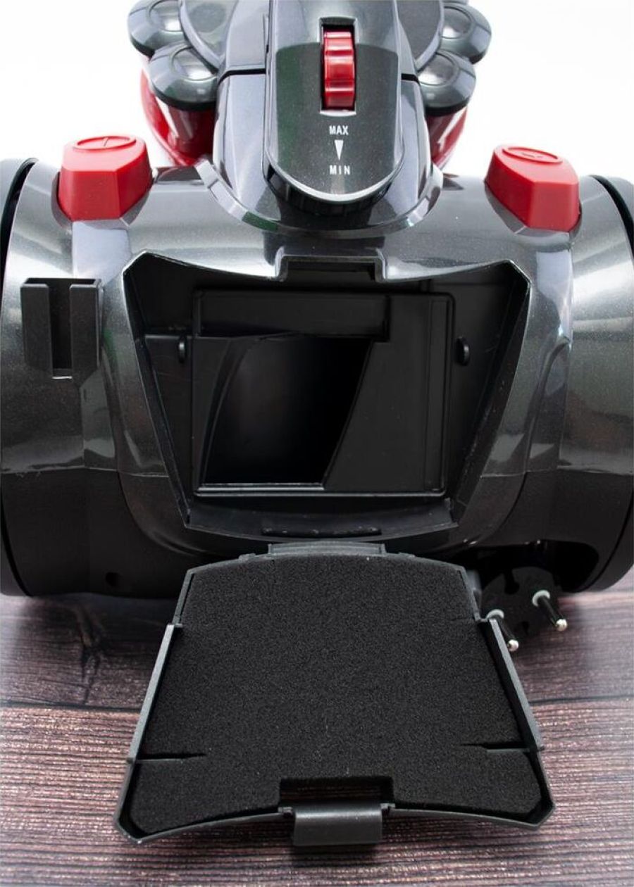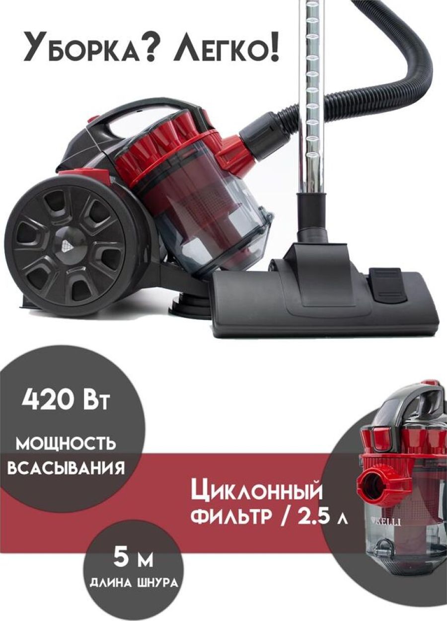 Мощность 2400 Вт, мощность всасывания 420 Вт, Тип пылесборника: циклонный фильтр 2,5 литра, 5-ти ступенчатая система фильтрации, металлическая телескопическая трубка, 1 год гарантии, длина сетевого шнура 5 м, индикатор заполнения, регулятор мощности. Цвет красный.