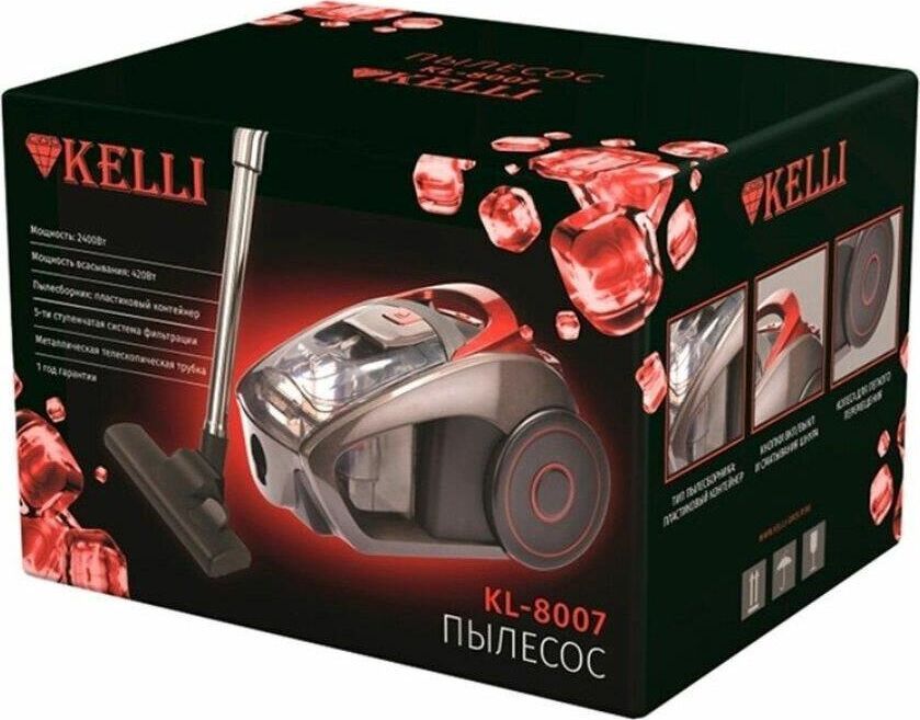 Мощность 2400 Вт, мощность всасывания 360 Вт, Тип пылесборника: пластиковый контейнер 2 литра, 5-ти ступенчатая система фильтрации, металлическая телескопическая трубка, 1 год гарантии, длинна сетевого шнура 4,5 м, индикатор заполнения пылесборника, низкий уровень шума, переключатель вкл/выкл.