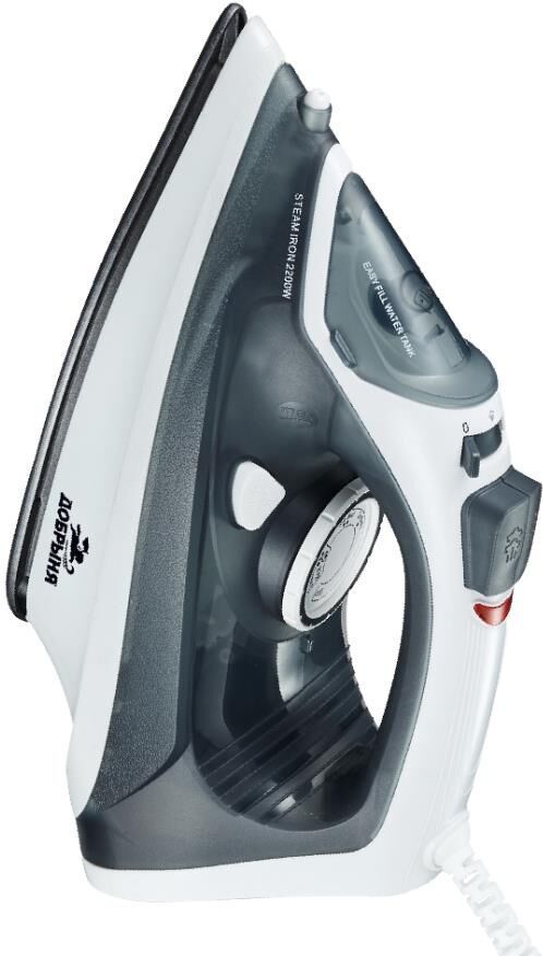 Утюг электрический; Мощность 2200Вт; Керамическая подошва размером 21,3*11,3см; Сухая и влажная глажка; Распылитель воды; Регулятор интенсивности пара; Регулируемый термостат; Резервуар 300мл; Вертикальное отпаривание; Паровой удар; Защита от накипи и капель; Самоочистка; Длина шнура 1,5м