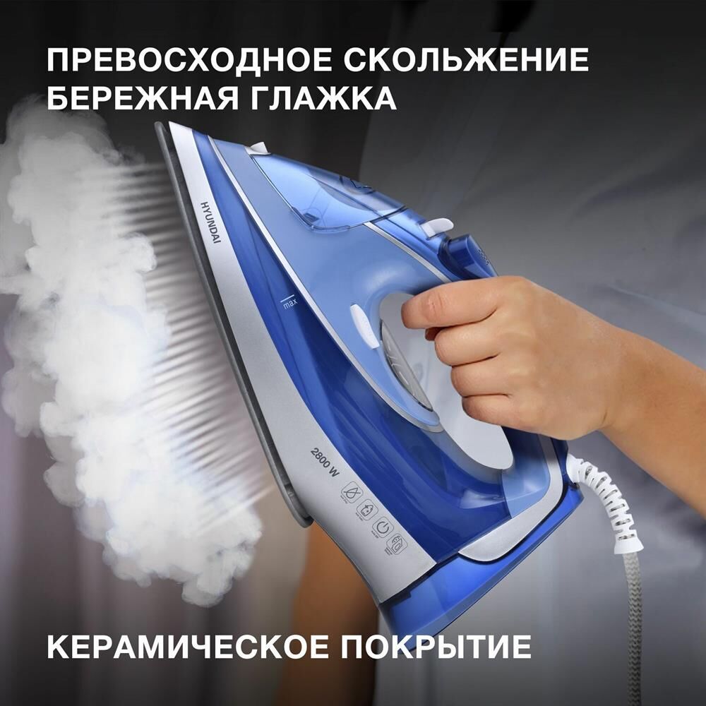 Размеры, мм: 313 x 128 x 153 , Название серии: Утюг Hyundai , Защита: Автоотключение , Индикаторы: Готовность к работе , Паровой удар, г/мин: 220 , Свойства подошвы: Устойчивое к царапинам , Подача пара, г/мин: 35
