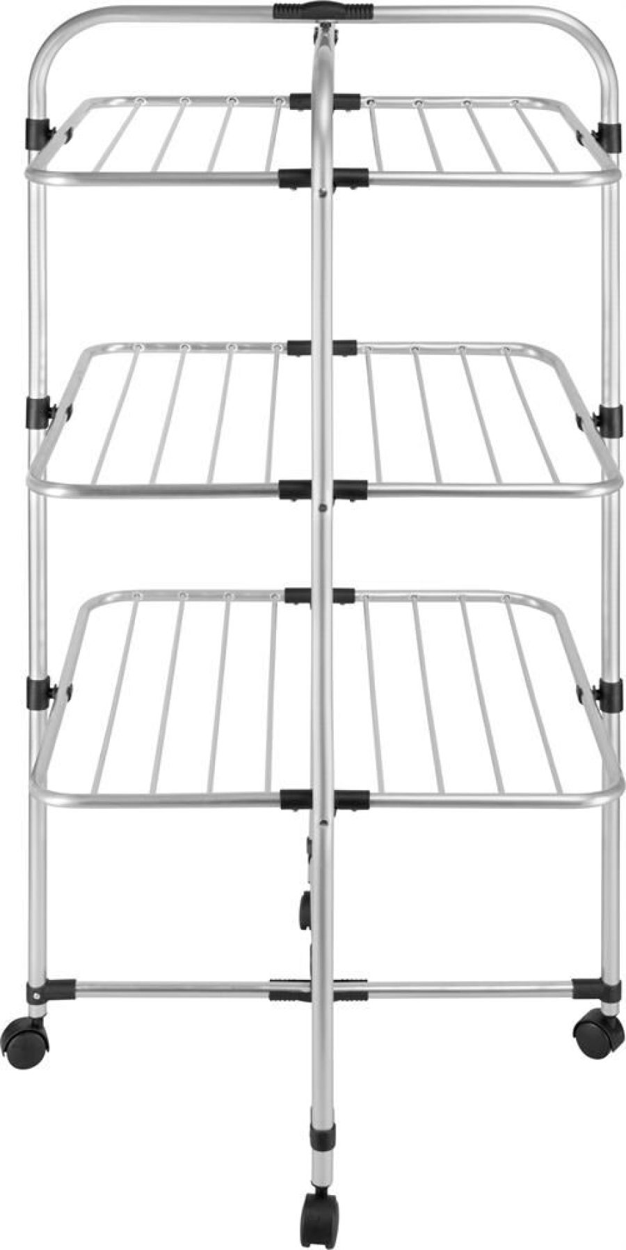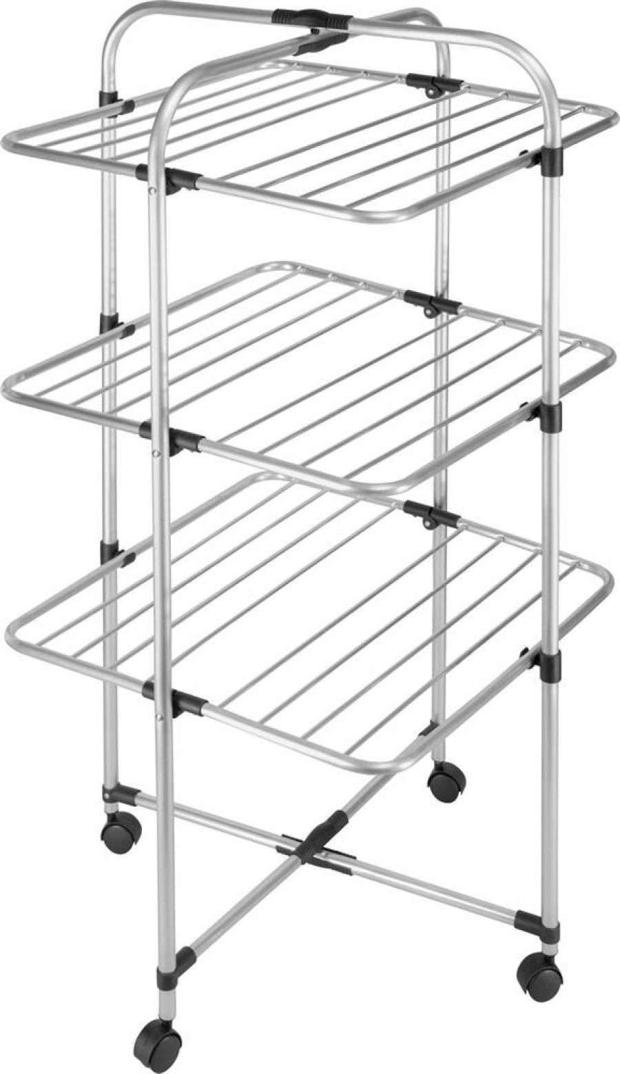 Сушилка вертикальная(башня) Кайлас, состоит из 3х уровней и имеет прочные трубки (ø 6/14/16/19мм), которые не оставляют следов/заломов на белье/одежде и обеспечивают более быстрое высыхание одежды/белья. Вертикальная конструкция на колесиках позволяет разместить сушилку в удобном для вас месте и обеспечивает сушку 2 полноценной стирки на небольшом пространстве. Размер в сложенном виде: 100х60х4,5см. Размер в разложенном виде: 113,5x60x60см Нагрузка: до 12кг. Полезная длина: 15,5м. Материал: алюминий, пластмасса Вес: 3,6кг