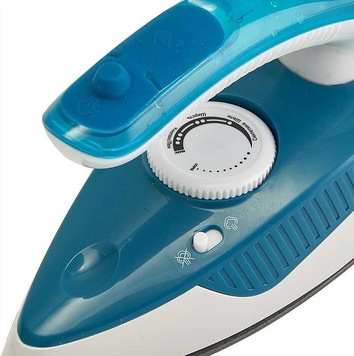 Параметры Номинальная потребляемая мощность 1000 Вт Объем резервуара для воды 80 мл Регулируемая подача пара до 15 г/мин Паровой удар 50 г/мин Длина шнура питания 1,9 м Описание Утюг электрический предназначен для глажения и отпаривания текстильных изделий, разглаживания складок и заминов на одежде в бытовых или аналогичных бытовым условиях Цвет: белый с синим Складная ручка Антипригарное покрытие подошвы Прозрачный резервуар для воды Специальный стаканчик для заполнения резервуара водой Индикатор нагрева утюга Терморегулятор Два рабочих режима: сухое глажение, отпаривание Возможность вертикального отпаривания Функция «Паровой удар» Упаковка: цветная коробка