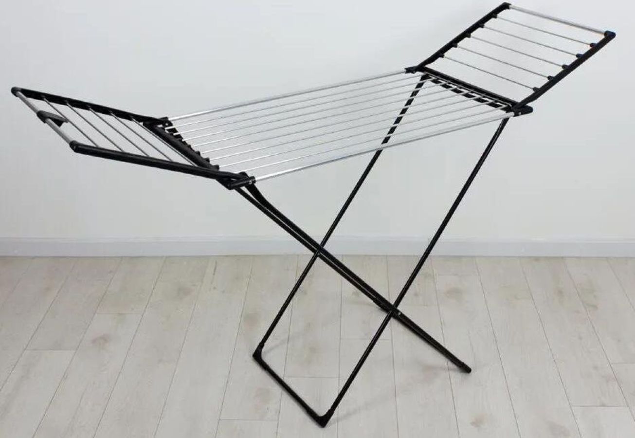 Сушилка для белья стальная с полимерным покрытием Прутья и кольца антикоррозийные из алюминия Рабочая длина 18 м. Максимальная нагрузка 17 кг. Вес 1,91 кг. Цвет покрытия эмали в ассортименте.Напольная, раскладная сушилка для белья c замком. Размер в разобранном виде: 176x56x92 см. Тип сушилки: Напольная Суммарная длина линий подвеса: 18 м