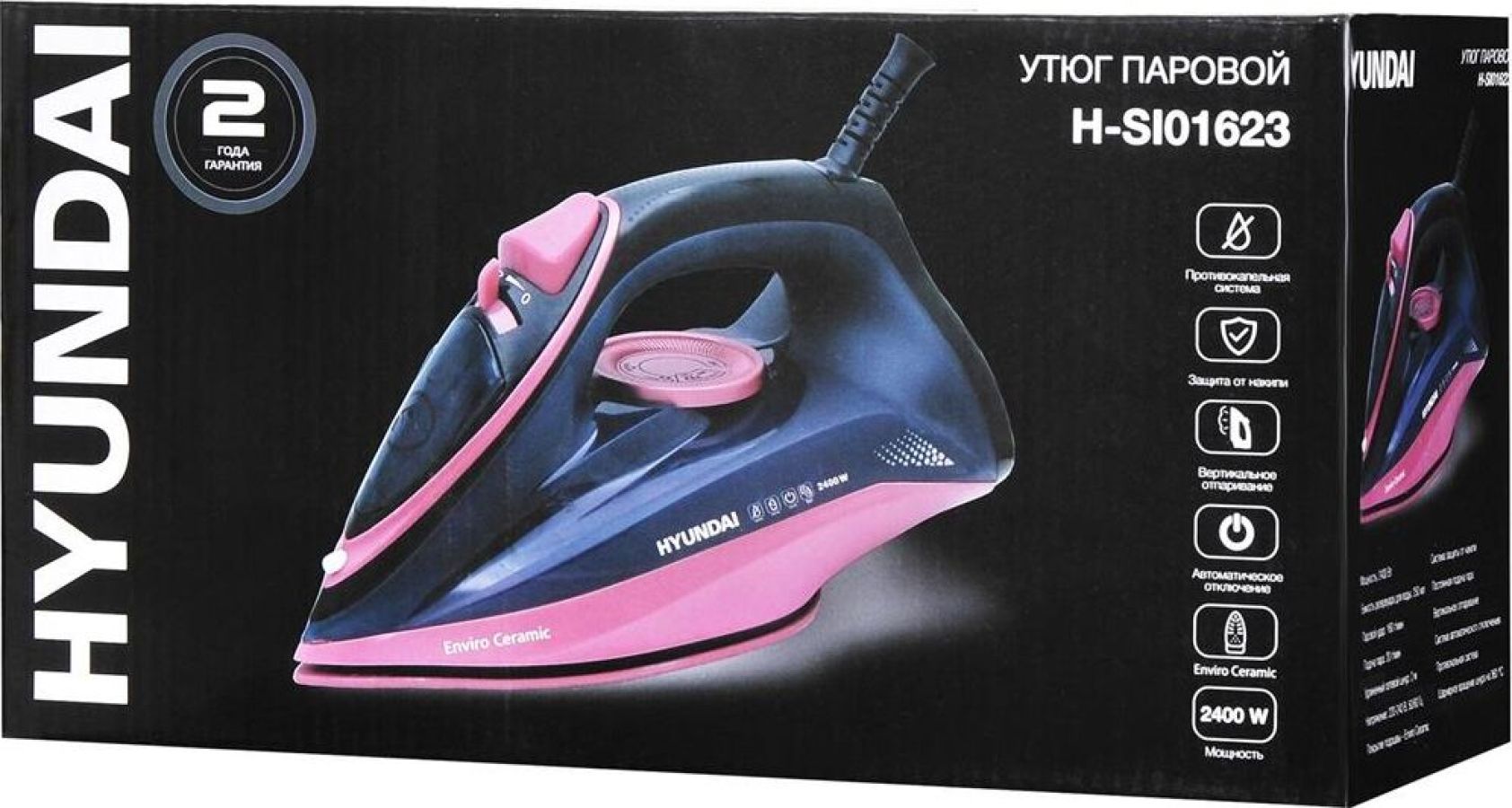 Покрытие подошвы- Enviro ceramic Система защиты от накипи Система автоматического отключения Вертикальное отпаривание Постоянная подача пара Противокапельная система Шарнирное вращение шнура на 360 °С Мощность: 2400 Вт Паровой удар: 160 г/мин Объем резервуара: 250 мл Удлиненный сетевой шнур: 2м Напряжение: 220-240 В, 50/60 Гц