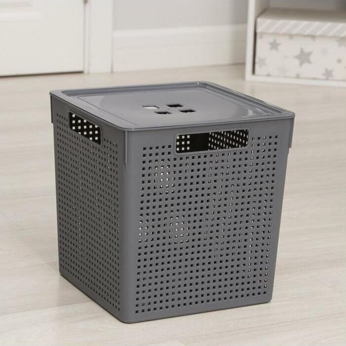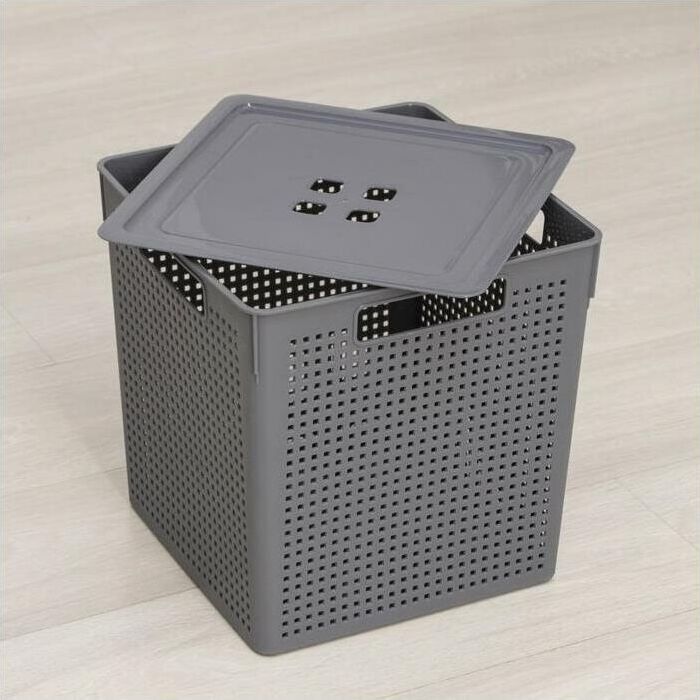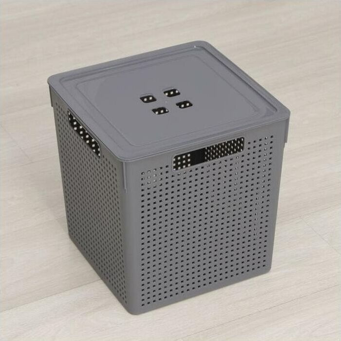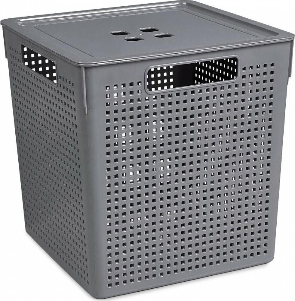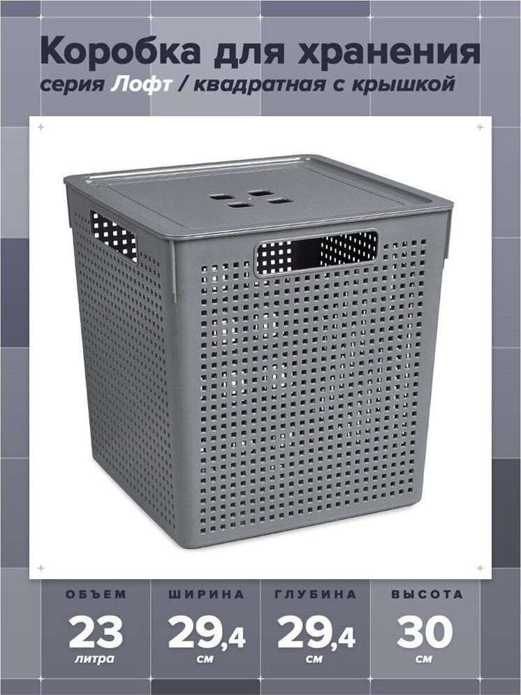 Коробка для хранения квадратная "Лофт" с крышкой 23л 294х294х301 (серый)