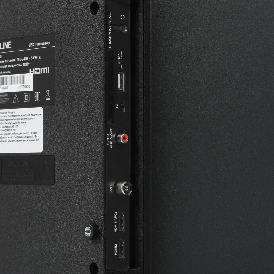 32" (81см),HD READY 1366x768, цифровой тюнер DVB-T2/DVB-C/S2 ,Frameless(.H.264/MPEG4/2/1/VC1/DivX),Запись ТВ программ , Электронный Телегид, Отложенный просмотр; слот CI+ для модуля условного доступа, формат экрана: 16: 9, Авто динамическая контрастность: 70000: 1 , яркость: 230 кд/м2, угол обзора (Г/В): 178°/178°, время отклика: 8 мс, Частота обновления экрана - 50Гц, 3D цифровой фильтр, русское, английское меню, телетекст, аудио: 2х6 Вт, входы: антенный ,разъемы для подключения: USB, 2 HDMI, копмозитный AV, компонентный YPbPr, Ethernet порт для подключения к локальной или глобальной сети RJ45, VGA, HDMI,ПК аудио,SCART вход,SPDIF, вход для наушников, вход CI+ (common interface), вход для антенны