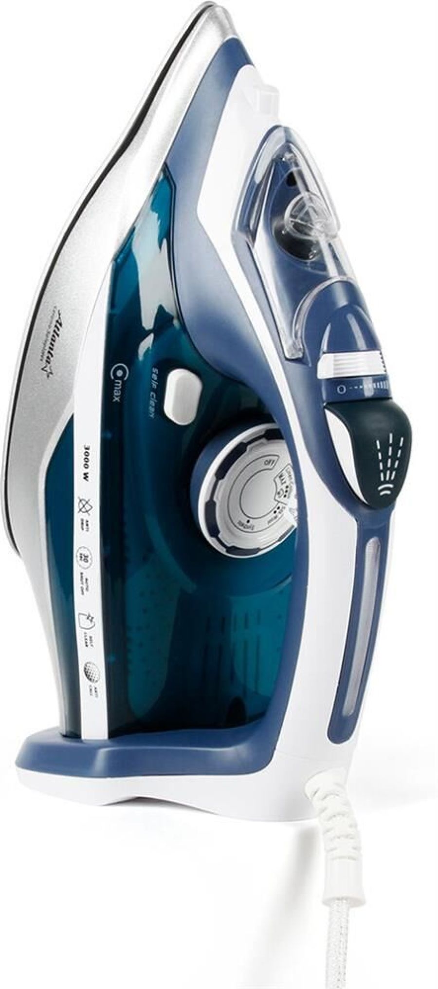 Функция автоматического отключения Долговечная керамическая подошва Функция самоочистки Противокапельная система Защита от накипи Сухой или паровой режим глажения Функция вертикального пара Прозрачный резервуар для воды Функция увлажнения Объем бачка 350 мл. Длина провода питания 1,5 м. Регулировка подачи пара до 37 г/мин Дополнительная подача пара до 95 г/мин Номинальная мощность 2800-3000 Вт 220-240 B ~ 50 Гц