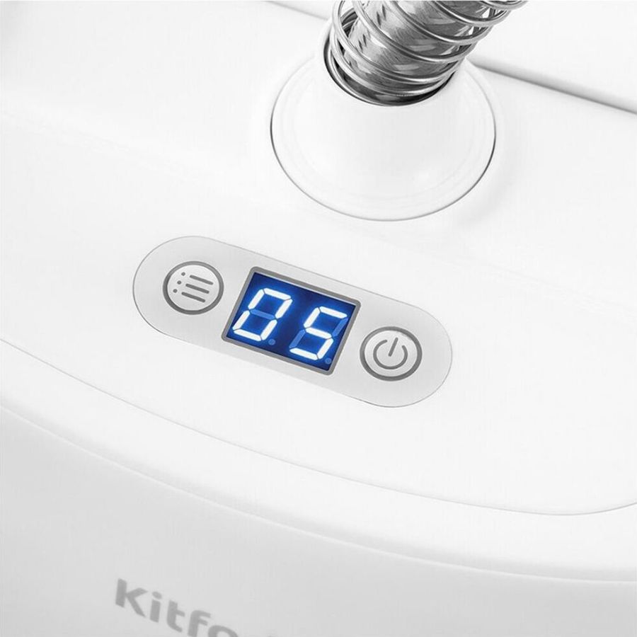 Отпариватель напольный Kitfort КТ-975 1580Вт белый Позволяет быстро прогладить вещи: рубашки, блузы, брюки, пышные платья, шубы, дублёнки. Также он справится с изделиями из текстиля, в том числе с занавесками, портьерами, обивкой мягкой мебели, матрасами и другим. Гладильная доска с 3 фиксированными положениями 45°, 90° и 180°. Мощность 1580 Вт Емкость резервуара для воды 1.5 л Съемный резервуар для воды есть Постоянная подача пара есть Подача пара 30 г/мин Регулировка подачи пара есть Количество режимов подачи пара 5 шт Количество насадок 1 шт Насадки в комплекте Ворсовая щётка предназначена для очистки ткани от шерсти, волос и ворса. Пар снимает с неё статический заряд, а ворс щётки быстро собирает весь ворс. Также данная насадка подойдёт для очистки мягкой мебели и мягких игрушек. Длина шнура питания 1.7 м Длина шланга для подачи пара 1.2 м Особенности Вертикальное отпаривание есть Дисплей есть Индикация уровня воды есть Подходит для любых типов тканей да