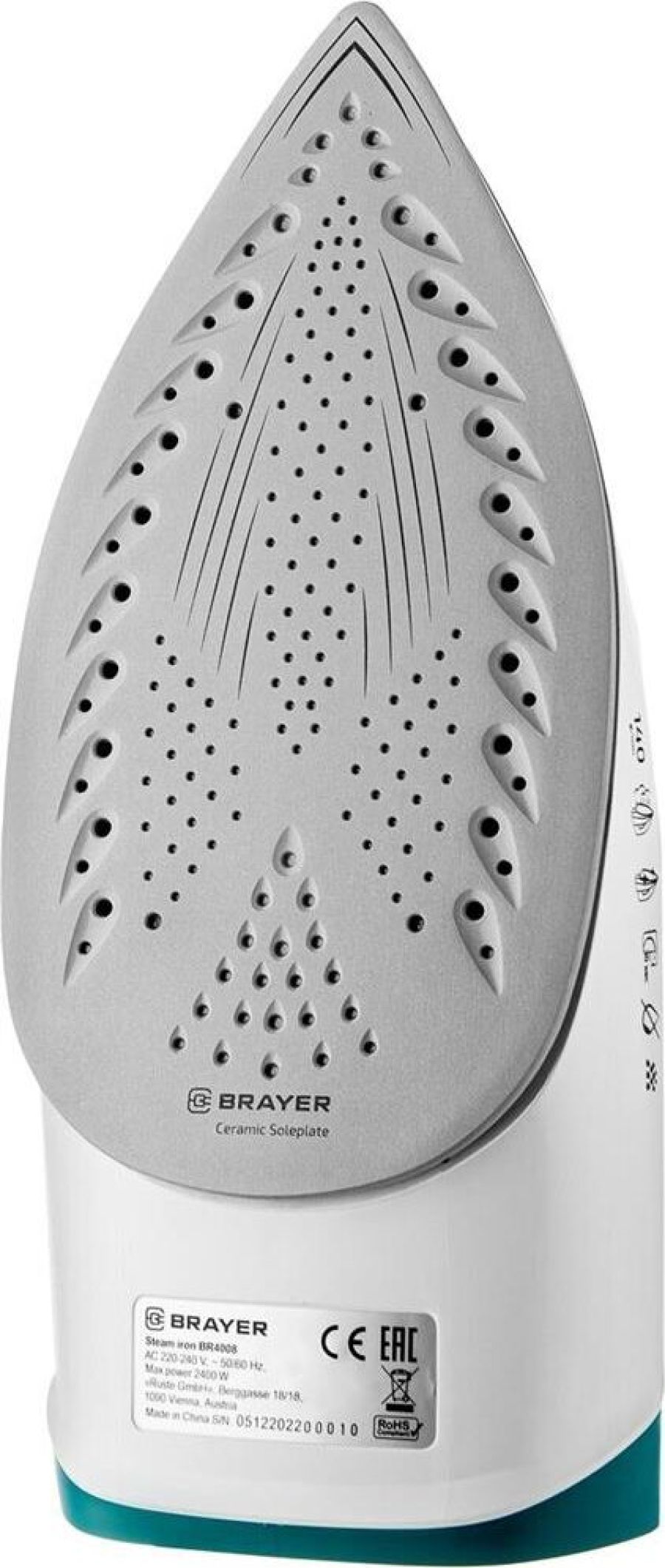 Максимальная мощность 2400 Вт Керамическое покрытие подошвы, обеспечивающее легкое скольжение по ткани Постоянная подача пара 25 г /мин Максимальный паровой удар 140 г/мин Вертикальное отпаривание Автоматическое отключение Плавная регулировка температурных режимов Встроенная система защиты от накипи Функция "Антикапля" Функция самоотчистки Функция разбрызгивания Резервуар для воды емкостью 330 мл Длина шнура 1,9 м Электропитание: 230 В, 50-60 Гц